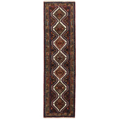 Ce tapis provient du district de Hamadan, un important centre de commerce de tapis et la zone de production de tapis la plus productive d'Iran. Hamadan est une grande ville comptant des centaines de milliers d'habitants. Comme Ekbatan, c'était la principale ville des rois achéménides. Elle abrite une population juive indigène et de nombreux monuments, dont les plus importants sont les tombeaux d'Esther et de Mordicai (au cœur des pèlerins juifs) et le tombeau d'Avicenne. Hamadan est une capitale provinciale. Deux types de tapis sont noués. L'un est le soi-disant « tapis de ville », également connu sous le nom de Shahrbaff. La production est moderne et largement contrôlée par l'État. La production villageoise, cependant, est beaucoup plus importante ; Hamadan est une ville de marché pour de nombreux villages producteurs de tapis qui ont chacun leur propre motif. Les plus importants sont Borchalu, Tuserkman, Memraban, Khamseh, Begardeh, Enjilas, Hosseinabad et Zandjan. Il existe une grande variété de motifs mais la qualité est très constante. Les couleurs sont fortes et souvent des couleurs végétales. Les motifs sont audacieux, bien qu'aléatoires, et Hosseinabad et Enjilas en particulier sont connus pour leurs motifs traversants. Les tapis ne mesurent généralement pas plus de 3 mètres sur 2.