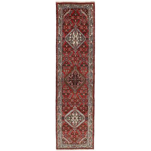Ce tapis provient du district de Hamadan, un important centre de commerce de tapis et la zone de production de tapis la plus productive d'Iran. Hamadan est une grande ville comptant des centaines de milliers d'habitants. Comme Ekbatan, c'était la principale ville des rois achéménides. Elle abrite une population juive indigène et de nombreux monuments, dont les plus importants sont les tombeaux d'Esther et de Mordicai (au cœur des pèlerins juifs) et le tombeau d'Avicenne. Hamadan est une capitale provinciale. Deux types de tapis sont noués. L'un est le soi-disant « tapis de ville », également connu sous le nom de Shahrbaff. La production est moderne et largement contrôlée par l'État. La production villageoise, cependant, est beaucoup plus importante ; Hamadan est une ville de marché pour de nombreux villages producteurs de tapis qui ont chacun leur propre motif. Les plus importants sont Borchalu, Tuserkman, Memraban, Khamseh, Begardeh, Enjilas, Hosseinabad et Zandjan. Il existe une grande variété de motifs mais la qualité est très constante. Les couleurs sont fortes et souvent des couleurs végétales. Les motifs sont audacieux, bien qu'aléatoires, et Hosseinabad et Enjilas en particulier sont connus pour leurs motifs traversants. Les tapis ne mesurent généralement pas plus de 3 mètres sur 2.