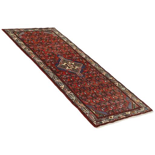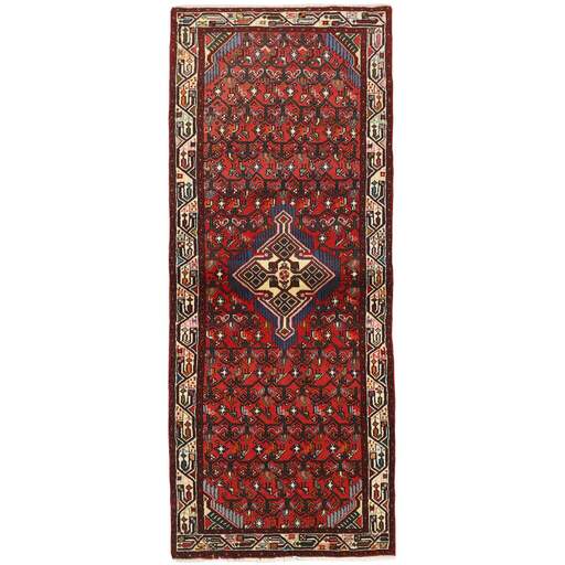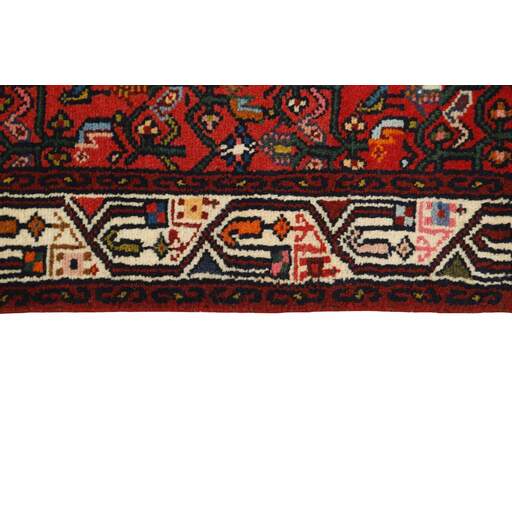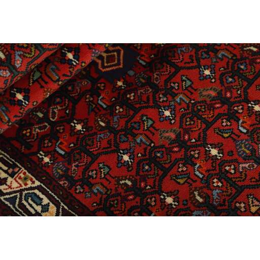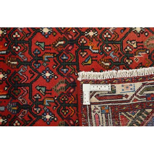 Ce tapis provient du district de Hamadan, un important centre de commerce de tapis et la zone de production de tapis la plus productive d'Iran. Hamadan est une grande ville comptant des centaines de milliers d'habitants. Comme Ekbatan, c'était la principale ville des rois achéménides. Elle abrite une population juive indigène et de nombreux monuments, dont les plus importants sont les tombeaux d'Esther et de Mordicai (au cœur des pèlerins juifs) et le tombeau d'Avicenne. Hamadan est une capitale provinciale. Deux types de tapis sont noués. L'un est le soi-disant « tapis de ville », également connu sous le nom de Shahrbaff. La production est moderne et largement contrôlée par l'État. La production villageoise, cependant, est beaucoup plus importante ; Hamadan est une ville de marché pour de nombreux villages producteurs de tapis qui ont chacun leur propre motif. Les plus importants sont Borchalu, Tuserkman, Memraban, Khamseh, Begardeh, Enjilas, Hosseinabad et Zandjan. Il existe une grande variété de motifs mais la qualité est très constante. Les couleurs sont fortes et souvent des couleurs végétales. Les motifs sont audacieux, bien qu'aléatoires, et Hosseinabad et Enjilas en particulier sont connus pour leurs motifs traversants. Les tapis ne mesurent généralement pas plus de 3 mètres sur 2.