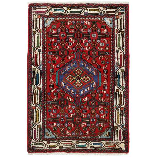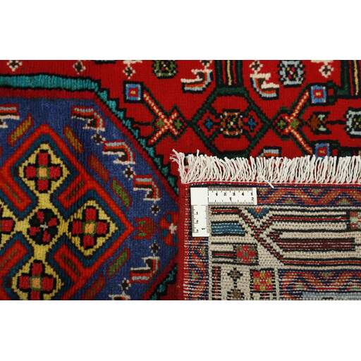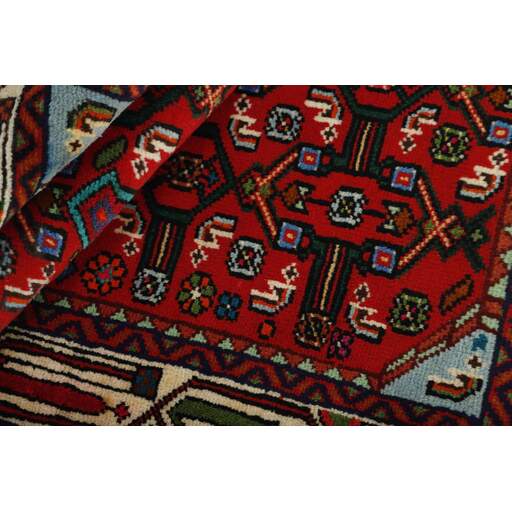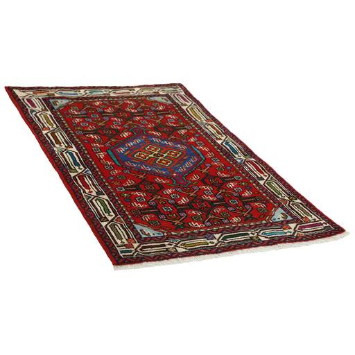 Ce tapis provient du district de Hamadan, un important centre de commerce de tapis et la zone de production de tapis la plus productive d'Iran. Hamadan est une grande ville comptant des centaines de milliers d'habitants. Comme Ekbatan, c'était la principale ville des rois achéménides. Elle abrite une population juive indigène et de nombreux monuments, dont les plus importants sont les tombeaux d'Esther et de Mordicai (au cœur des pèlerins juifs) et le tombeau d'Avicenne. Hamadan est une capitale provinciale. Deux types de tapis sont noués. L'un est le soi-disant « tapis de ville », également connu sous le nom de Shahrbaff. La production est moderne et largement contrôlée par l'État. La production villageoise, cependant, est beaucoup plus importante ; Hamadan est une ville de marché pour de nombreux villages producteurs de tapis qui ont chacun leur propre motif. Les plus importants sont Borchalu, Tuserkman, Memraban, Khamseh, Begardeh, Enjilas, Hosseinabad et Zandjan. Il existe une grande variété de motifs mais la qualité est très constante. Les couleurs sont fortes et souvent des couleurs végétales. Les motifs sont audacieux, bien qu'aléatoires, et Hosseinabad et Enjilas en particulier sont connus pour leurs motifs traversants. Les tapis ne mesurent généralement pas plus de 3 mètres sur 2.