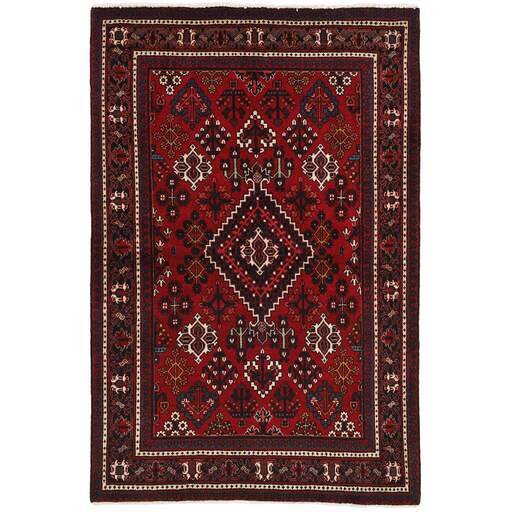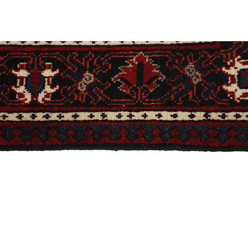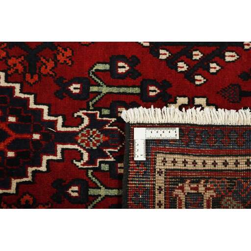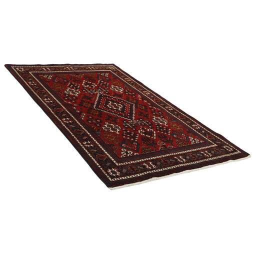 Ce tapis provient du district de Hamadan, un important centre de commerce de tapis et la zone de production de tapis la plus productive d'Iran. Hamadan est une grande ville comptant des centaines de milliers d'habitants. Comme Ekbatan, c'était la principale ville des rois achéménides. Elle abrite une population juive indigène et de nombreux monuments, dont les plus importants sont les tombeaux d'Esther et de Mordicai (au cœur des pèlerins juifs) et le tombeau d'Avicenne. Hamadan est une capitale provinciale. Deux types de tapis sont noués. L'un est le soi-disant « tapis de ville », également connu sous le nom de Shahrbaff. La production est moderne et largement contrôlée par l'État. La production villageoise, cependant, est beaucoup plus importante ; Hamadan est une ville de marché pour de nombreux villages producteurs de tapis qui ont chacun leur propre motif. Les plus importants sont Borchalu, Tuserkman, Memraban, Khamseh, Begardeh, Enjilas, Hosseinabad et Zandjan. Il existe une grande variété de motifs mais la qualité est très constante. Les couleurs sont fortes et souvent des couleurs végétales. Les motifs sont audacieux, bien qu'aléatoires, et Hosseinabad et Enjilas en particulier sont connus pour leurs motifs traversants. Les tapis ne mesurent généralement pas plus de 3 mètres sur 2.