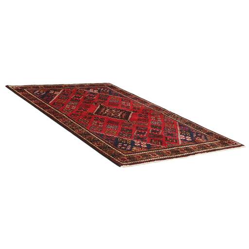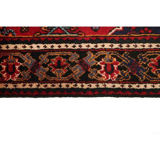 Ce tapis provient du district de Hamadan, un important centre de commerce de tapis et la zone de production de tapis la plus productive d'Iran. Hamadan est une grande ville comptant des centaines de milliers d'habitants. Comme Ekbatan, c'était la principale ville des rois achéménides. Elle abrite une population juive indigène et de nombreux monuments, dont les plus importants sont les tombeaux d'Esther et de Mordicai (au cœur des pèlerins juifs) et le tombeau d'Avicenne. Hamadan est une capitale provinciale. Deux types de tapis sont noués. L'un est le soi-disant « tapis de ville », également connu sous le nom de Shahrbaff. La production est moderne et largement contrôlée par l'État. La production villageoise, cependant, est beaucoup plus importante ; Hamadan est une ville de marché pour de nombreux villages producteurs de tapis qui ont chacun leur propre motif. Les plus importants sont Borchalu, Tuserkman, Memraban, Khamseh, Begardeh, Enjilas, Hosseinabad et Zandjan. Il existe une grande variété de motifs mais la qualité est très constante. Les couleurs sont fortes et souvent des couleurs végétales. Les motifs sont audacieux, bien qu'aléatoires, et Hosseinabad et Enjilas en particulier sont connus pour leurs motifs traversants. Les tapis ne mesurent généralement pas plus de 3 mètres sur 2.