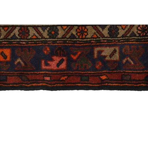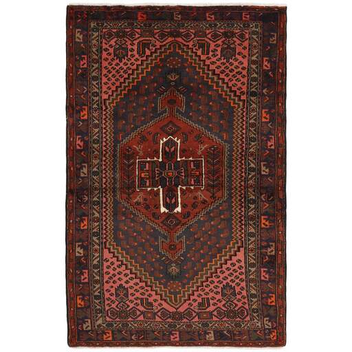 Ce tapis provient du district de Hamadan, un important centre de commerce de tapis et la zone de production de tapis la plus productive d'Iran. Hamadan est une grande ville comptant des centaines de milliers d'habitants. Comme Ekbatan, c'était la principale ville des rois achéménides. Elle abrite une population juive indigène et de nombreux monuments, dont les plus importants sont les tombeaux d'Esther et de Mordicai (au cœur des pèlerins juifs) et le tombeau d'Avicenne. Hamadan est une capitale provinciale. Deux types de tapis sont noués. L'un est le soi-disant « tapis de ville », également connu sous le nom de Shahrbaff. La production est moderne et largement contrôlée par l'État. La production villageoise, cependant, est beaucoup plus importante ; Hamadan est une ville de marché pour de nombreux villages producteurs de tapis qui ont chacun leur propre motif. Les plus importants sont Borchalu, Tuserkman, Memraban, Khamseh, Begardeh, Enjilas, Hosseinabad et Zandjan. Il existe une grande variété de motifs mais la qualité est très constante. Les couleurs sont fortes et souvent des couleurs végétales. Les motifs sont audacieux, bien qu'aléatoires, et Hosseinabad et Enjilas en particulier sont connus pour leurs motifs traversants. Les tapis ne mesurent généralement pas plus de 3 mètres sur 2.