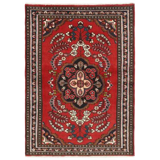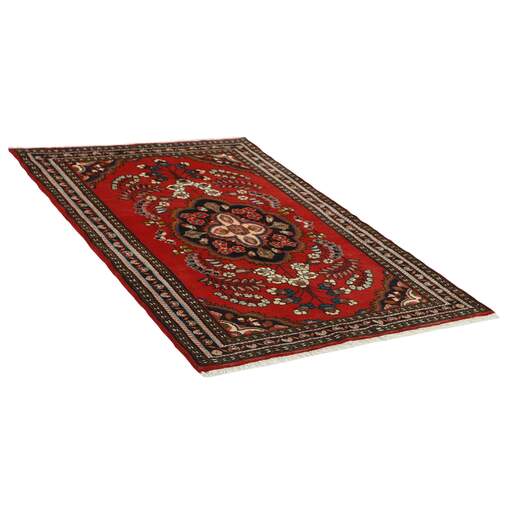 Ce tapis provient du district de Hamadan, un important centre de commerce de tapis et la zone de production de tapis la plus productive d'Iran. Hamadan est une grande ville comptant des centaines de milliers d'habitants. Comme Ekbatan, c'était la principale ville des rois achéménides. Elle abrite une population juive indigène et de nombreux monuments, dont les plus importants sont les tombeaux d'Esther et de Mordicai (au cœur des pèlerins juifs) et le tombeau d'Avicenne. Hamadan est une capitale provinciale. Deux types de tapis sont noués. L'un est le soi-disant « tapis de ville », également connu sous le nom de Shahrbaff. La production est moderne et largement contrôlée par l'État. La production villageoise, cependant, est beaucoup plus importante ; Hamadan est une ville de marché pour de nombreux villages producteurs de tapis qui ont chacun leur propre motif. Les plus importants sont Borchalu, Tuserkman, Memraban, Khamseh, Begardeh, Enjilas, Hosseinabad et Zandjan. Il existe une grande variété de motifs mais la qualité est très constante. Les couleurs sont fortes et souvent des couleurs végétales. Les motifs sont audacieux, bien qu'aléatoires, et Hosseinabad et Enjilas en particulier sont connus pour leurs motifs traversants. Les tapis ne mesurent généralement pas plus de 3 mètres sur 2.