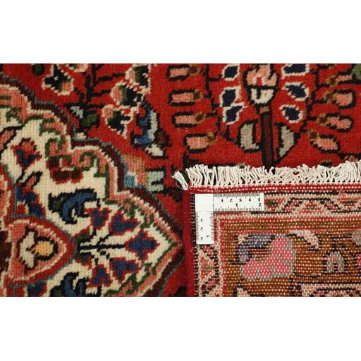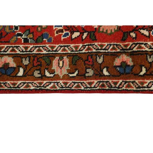 Ce tapis provient du district de Hamadan, un important centre de commerce de tapis et la zone de production de tapis la plus productive d'Iran. Hamadan est une grande ville comptant des centaines de milliers d'habitants. Comme Ekbatan, c'était la principale ville des rois achéménides. Elle abrite une population juive indigène et de nombreux monuments, dont les plus importants sont les tombeaux d'Esther et de Mordicai (au cœur des pèlerins juifs) et le tombeau d'Avicenne. Hamadan est une capitale provinciale. Deux types de tapis sont noués. L'un est le soi-disant « tapis de ville », également connu sous le nom de Shahrbaff. La production est moderne et largement contrôlée par l'État. La production villageoise, cependant, est beaucoup plus importante ; Hamadan est une ville de marché pour de nombreux villages producteurs de tapis qui ont chacun leur propre motif. Les plus importants sont Borchalu, Tuserkman, Memraban, Khamseh, Begardeh, Enjilas, Hosseinabad et Zandjan. Il existe une grande variété de motifs mais la qualité est très constante. Les couleurs sont fortes et souvent des couleurs végétales. Les motifs sont audacieux, bien qu'aléatoires, et Hosseinabad et Enjilas en particulier sont connus pour leurs motifs traversants. Les tapis ne mesurent généralement pas plus de 3 mètres sur 2.