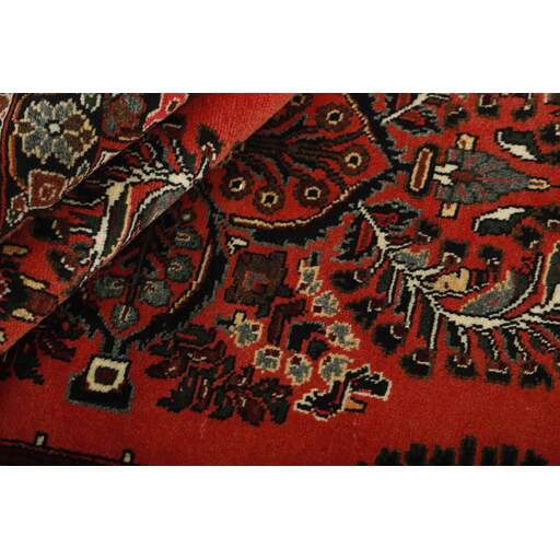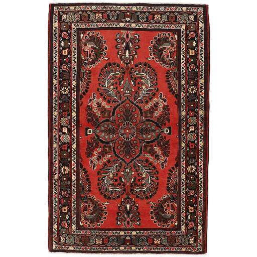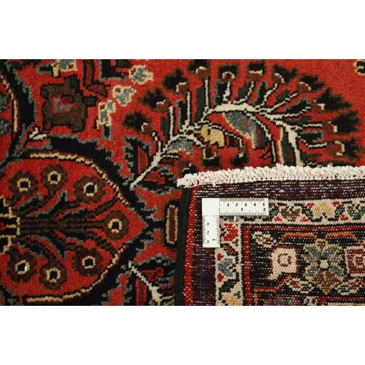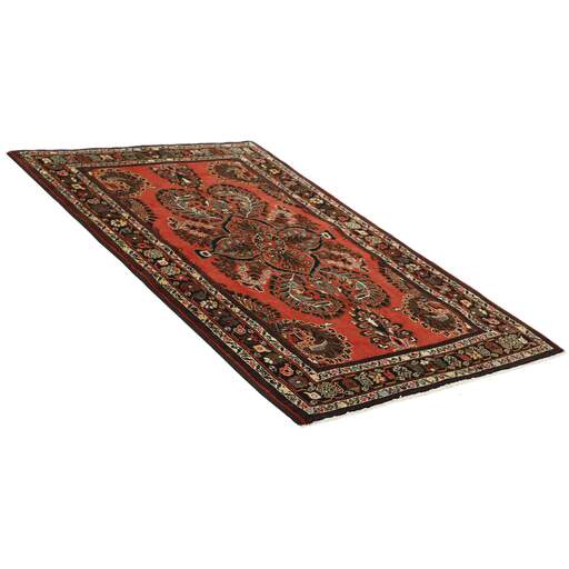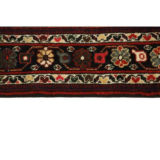 Ce tapis provient du district de Hamadan, un important centre de commerce de tapis et la zone de production de tapis la plus productive d'Iran. Hamadan est une grande ville comptant des centaines de milliers d'habitants. Comme Ekbatan, c'était la principale ville des rois achéménides. Elle abrite une population juive indigène et de nombreux monuments, dont les plus importants sont les tombeaux d'Esther et de Mordicai (au cœur des pèlerins juifs) et le tombeau d'Avicenne. Hamadan est une capitale provinciale. Deux types de tapis sont noués. L'un est le soi-disant « tapis de ville », également connu sous le nom de Shahrbaff. La production est moderne et largement contrôlée par l'État. La production villageoise, cependant, est beaucoup plus importante ; Hamadan est une ville de marché pour de nombreux villages producteurs de tapis qui ont chacun leur propre motif. Les plus importants sont Borchalu, Tuserkman, Memraban, Khamseh, Begardeh, Enjilas, Hosseinabad et Zandjan. Il existe une grande variété de motifs mais la qualité est très constante. Les couleurs sont fortes et souvent des couleurs végétales. Les motifs sont audacieux, bien qu'aléatoires, et Hosseinabad et Enjilas en particulier sont connus pour leurs motifs traversants. Les tapis ne mesurent généralement pas plus de 3 mètres sur 2.