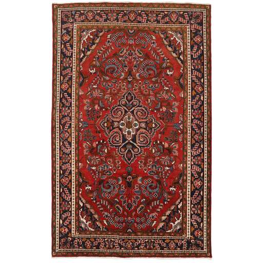 Ce tapis provient du district de Hamadan, un important centre de commerce de tapis et la zone de production de tapis la plus productive d'Iran. Hamadan est une grande ville comptant des centaines de milliers d'habitants. Comme Ekbatan, c'était la principale ville des rois achéménides. Elle abrite une population juive indigène et de nombreux monuments, dont les plus importants sont les tombeaux d'Esther et de Mordicai (au cœur des pèlerins juifs) et le tombeau d'Avicenne. Hamadan est une capitale provinciale. Deux types de tapis sont noués. L'un est le soi-disant « tapis de ville », également connu sous le nom de Shahrbaff. La production est moderne et largement contrôlée par l'État. La production villageoise, cependant, est beaucoup plus importante ; Hamadan est une ville de marché pour de nombreux villages producteurs de tapis qui ont chacun leur propre motif. Les plus importants sont Borchalu, Tuserkman, Memraban, Khamseh, Begardeh, Enjilas, Hosseinabad et Zandjan. Il existe une grande variété de motifs mais la qualité est très constante. Les couleurs sont fortes et souvent des couleurs végétales. Les motifs sont audacieux, bien qu'aléatoires, et Hosseinabad et Enjilas en particulier sont connus pour leurs motifs traversants. Les tapis ne mesurent généralement pas plus de 3 mètres sur 2.