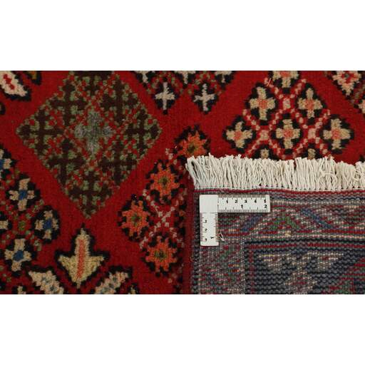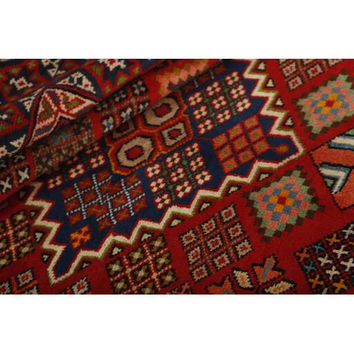 Ce tapis provient du district de Hamadan, un important centre de commerce de tapis et la zone de production de tapis la plus productive d'Iran. Hamadan est une grande ville comptant des centaines de milliers d'habitants. Comme Ekbatan, c'était la principale ville des rois achéménides. Elle abrite une population juive indigène et de nombreux monuments, dont les plus importants sont les tombeaux d'Esther et de Mordicai (au cœur des pèlerins juifs) et le tombeau d'Avicenne. Hamadan est une capitale provinciale. Deux types de tapis sont noués. L'un est le soi-disant « tapis de ville », également connu sous le nom de Shahrbaff. La production est moderne et largement contrôlée par l'État. La production villageoise, cependant, est beaucoup plus importante ; Hamadan est une ville de marché pour de nombreux villages producteurs de tapis qui ont chacun leur propre motif. Les plus importants sont Borchalu, Tuserkman, Memraban, Khamseh, Begardeh, Enjilas, Hosseinabad et Zandjan. Il existe une grande variété de motifs mais la qualité est très constante. Les couleurs sont fortes et souvent des couleurs végétales. Les motifs sont audacieux, bien qu'aléatoires, et Hosseinabad et Enjilas en particulier sont connus pour leurs motifs traversants. Les tapis ne mesurent généralement pas plus de 3 mètres sur 2.