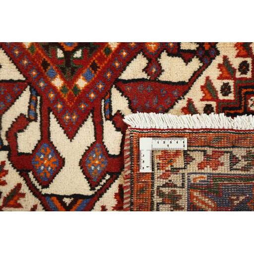 Ce tapis provient du district de Hamadan, un important centre de commerce de tapis et la zone de production de tapis la plus productive d'Iran. Hamadan est une grande ville comptant des centaines de milliers d'habitants. Comme Ekbatan, c'était la principale ville des rois achéménides. Elle abrite une population juive indigène et de nombreux monuments, dont les plus importants sont les tombeaux d'Esther et de Mordicai (au cœur des pèlerins juifs) et le tombeau d'Avicenne. Hamadan est une capitale provinciale. Deux types de tapis sont noués. L'un est le soi-disant « tapis de ville », également connu sous le nom de Shahrbaff. La production est moderne et largement contrôlée par l'État. La production villageoise, cependant, est beaucoup plus importante ; Hamadan est une ville de marché pour de nombreux villages producteurs de tapis qui ont chacun leur propre motif. Les plus importants sont Borchalu, Tuserkman, Memraban, Khamseh, Begardeh, Enjilas, Hosseinabad et Zandjan. Il existe une grande variété de motifs mais la qualité est très constante. Les couleurs sont fortes et souvent des couleurs végétales. Les motifs sont audacieux, bien qu'aléatoires, et Hosseinabad et Enjilas en particulier sont connus pour leurs motifs traversants. Les tapis ne mesurent généralement pas plus de 3 mètres sur 2.