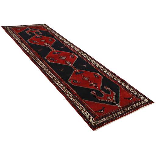 La ville et le district de Hamadan sont un centre important pour le commerce de tapis, ainsi que la zone de production de tapis la plus productive d'Iran. Hamadan est une grande ville avec des centaines de milliers d'habitants. Comme Ekbatan, c'était la principale ville des rois achéménides. Elle abrite une population juive indigène et de nombreux monuments, dont les plus importants sont les tombeaux d'Esther et de Mordicai (au cœur des pèlerins juifs) et le tombeau d'Avicenne. Hamadan est une capitale provinciale. Deux types de tapis sont noués. L'un est le soi-disant « tapis de ville », également connu sous le nom de Shahrbaff. La production est moderne et largement contrôlée par l'État. La production villageoise, cependant, est beaucoup plus importante ; Hamadan est une ville de marché pour de nombreux villages producteurs de tapis qui ont chacun leur propre motif. Les plus importants sont Borchalu, Tuserkman, Memraban, Khamseh, Begardeh, Enjilas, Hosseinabad et Zandjan. Il existe une grande variété de motifs mais la qualité est très constante. Les couleurs sont fortes et souvent des couleurs végétales. Les motifs sont audacieux, bien qu'aléatoires, et Hosseinabad et Enjilas en particulier sont connus pour leurs motifs traversants. Les tapis ne mesurent généralement pas plus de 3 mètres sur 2.