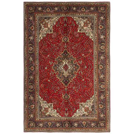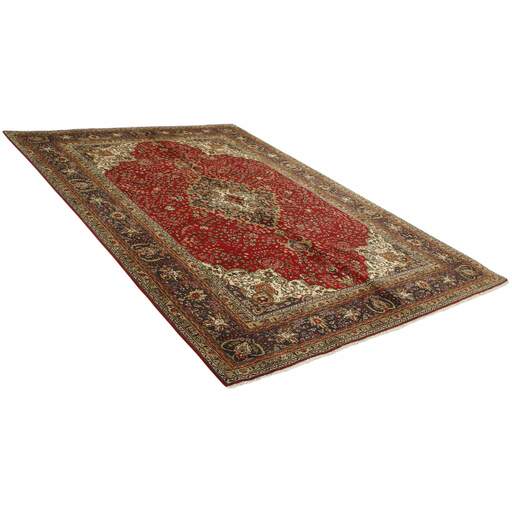 Tabriz est l'une des villes les plus importantes d'Iran. Elle compte 1,5 million d'habitants et est la capitale de la province de l'Azerbaïdjan oriental. Étant l'une des plus grandes régions productrices de tapis de Perse, les tapis de Tabriz sont exportés dans toutes les qualités, du plus simple au plus luxueux. Les meilleures qualités sont divisées en deux catégories principales : le Tabriz Mahi, également connu sous le nom de « motif de poisson de Tabriz » (le motif en forme de feuille du tapis est appelé Mahi, ce qui signifie « poisson »), et le Tabriz Nagsheh, qui signifie motif. Dans ce contexte, il fait référence aux motifs et symboles figuratifs de Keshan et d'Ispahan, qui ont inspiré le tapis Tabriz Nagsheh. Les noueurs sont incroyablement habiles et ils ont inventé un type spécial de crochet, qu'ils peuvent utiliser à la place de leurs doigts pour nouer les nœuds. La chaîne et la trame sont en coton, et le velours est en laine, souvent avec de la soie tissée dans les qualités les plus fines. Les couleurs des meilleurs tapis sont fines et raffinées. Les qualités les plus brutes ont des couleurs vives et sont rarement exportées. Les tapis de Tabriz sont souvent numérotés, comme Tabriz 50, ce qui est une indication de qualité. Le Tabriz 50 a 500 000 nœuds par m2. Les tapis de Tabriz sont considérés comme étant durables et de très haute qualité.