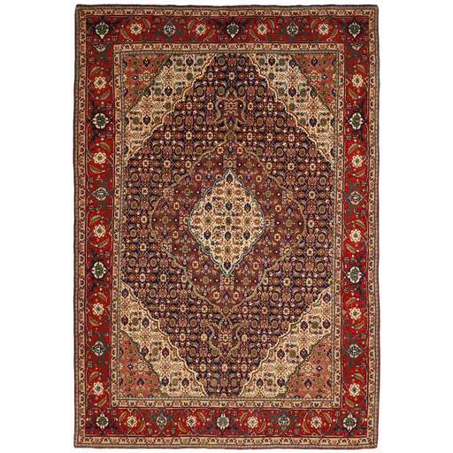 Tabriz est l'une des villes les plus importantes d'Iran. Elle compte 1,5 million d'habitants et est la capitale de la province de l'Azerbaïdjan oriental. Étant l'une des plus grandes régions productrices de tapis de Perse, les tapis de Tabriz sont exportés dans toutes les qualités, du plus simple au plus luxueux. Les meilleures qualités sont divisées en deux catégories principales : le Tabriz Mahi, également connu sous le nom de « motif de poisson de Tabriz » (le motif en forme de feuille du tapis est appelé Mahi, ce qui signifie « poisson »), et le Tabriz Nagsheh, qui signifie motif. Dans ce contexte, il fait référence aux motifs et symboles figuratifs de Keshan et d'Ispahan, qui ont inspiré le tapis Tabriz Nagsheh. Les noueurs sont incroyablement habiles et ils ont inventé un type spécial de crochet, qu'ils peuvent utiliser à la place de leurs doigts pour nouer les nœuds. La chaîne et la trame sont en coton, et le velours est en laine, souvent avec de la soie tissée dans les qualités les plus fines. Les couleurs des meilleurs tapis sont fines et raffinées. Les qualités les plus brutes ont des couleurs vives et sont rarement exportées. Les tapis de Tabriz sont souvent numérotés, comme Tabriz 50, ce qui est une indication de qualité. Le Tabriz 50 a 500 000 nœuds par m2. Les tapis de Tabriz sont considérés comme étant durables et de très haute qualité.
