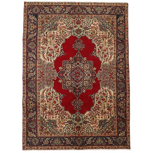 Tabriz est l'une des villes les plus importantes d'Iran. Elle compte 1,5 million d'habitants et est la capitale de la province de l'Azerbaïdjan oriental. Étant l'une des plus grandes régions productrices de tapis de Perse, les tapis de Tabriz sont exportés dans toutes les qualités, du plus simple au plus luxueux. Les meilleures qualités sont divisées en deux catégories principales : le Tabriz Mahi, également connu sous le nom de « motif de poisson de Tabriz » (le motif en forme de feuille du tapis est appelé Mahi, ce qui signifie « poisson »), et le Tabriz Nagsheh, qui signifie motif. Dans ce contexte, il fait référence aux motifs et symboles figuratifs de Keshan et d'Ispahan, qui ont inspiré le tapis Tabriz Nagsheh. Les noueurs sont incroyablement habiles et ils ont inventé un type spécial de crochet, qu'ils peuvent utiliser à la place de leurs doigts pour nouer les nœuds. La chaîne et la trame sont en coton, et le velours est en laine, souvent avec de la soie tissée dans les qualités les plus fines. Les couleurs des meilleurs tapis sont fines et raffinées. Les qualités les plus brutes ont des couleurs vives et sont rarement exportées. Les tapis de Tabriz sont souvent numérotés, comme Tabriz 50, ce qui est une indication de qualité. Le Tabriz 50 a 500 000 nœuds par m2. Les tapis de Tabriz sont considérés comme étant durables et de très haute qualité.