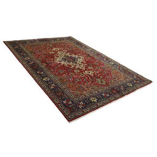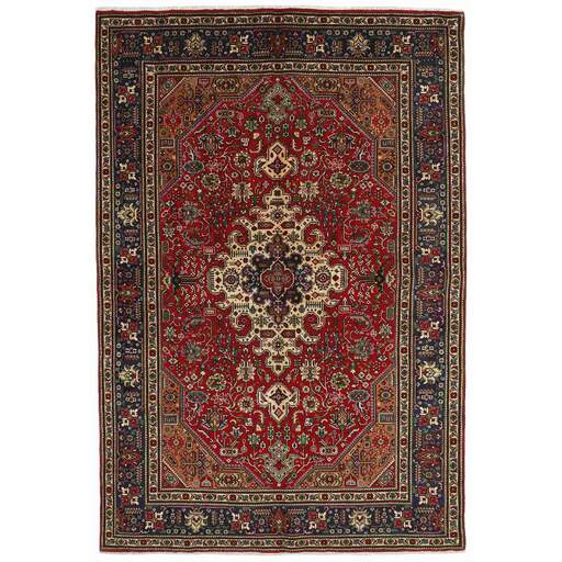 Tabriz est l'une des villes les plus importantes d'Iran. Elle compte 1,5 million d'habitants et est la capitale de la province de l'Azerbaïdjan oriental. Étant l'une des plus grandes régions productrices de tapis de Perse, les tapis de Tabriz sont exportés dans toutes les qualités, du plus simple au plus luxueux. Les meilleures qualités sont divisées en deux catégories principales : le Tabriz Mahi, également connu sous le nom de « motif de poisson de Tabriz » (le motif en forme de feuille du tapis est appelé Mahi, ce qui signifie « poisson »), et le Tabriz Nagsheh, qui signifie motif. Dans ce contexte, il fait référence aux motifs et symboles figuratifs de Keshan et d'Ispahan, qui ont inspiré le tapis Tabriz Nagsheh. Les noueurs sont incroyablement habiles et ils ont inventé un type spécial de crochet, qu'ils peuvent utiliser à la place de leurs doigts pour nouer les nœuds. La chaîne et la trame sont en coton, et le velours est en laine, souvent avec de la soie tissée dans les qualités les plus fines. Les couleurs des meilleurs tapis sont fines et raffinées. Les qualités les plus brutes ont des couleurs vives et sont rarement exportées. Les tapis de Tabriz sont souvent numérotés, comme Tabriz 50, ce qui est une indication de qualité. Le Tabriz 50 a 500 000 nœuds par m2. Les tapis de Tabriz sont considérés comme étant durables et de très haute qualité.