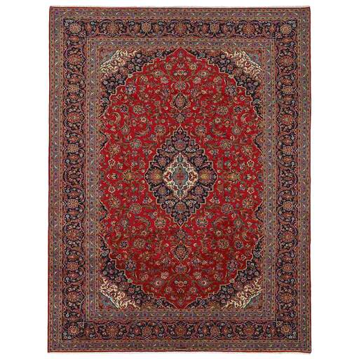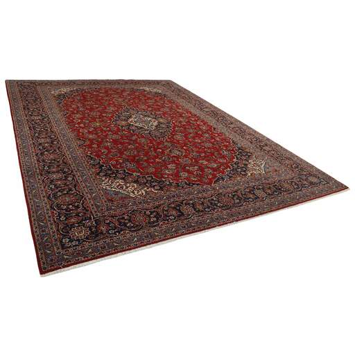 Keshan a toujours été célèbre pour son artisanat. Les villages se situent sur la route principale entre Ghom et Ispahan, dans le centre de l'Iran. À l'est, la région borde le plus grand désert d'Iran. Malgré le déclin de cet artisanat particulier au cours du XXe siècle, de nombreux tapis Keshan magnifiques sont toujours fabriqués conformément aux traditions des anciens maîtres, par exemple décorés de magnifiques motifs en médaillon ou de tapisseries représentant des motifs humains et animaux. Les motifs sont le plus souvent tissés autour d'un médaillon au centre du tapis, dont certains se répètent dans les coins. Les autres champs sont densément décorés de fleurs et de vignes réalistes. La bordure principale présente souvent le motif « Herati » (une feuille arquée), tandis que les bordures secondaires présentent des rosettes. Le rouge brique et le bleu foncé sont les couleurs de base les plus courantes. Keshan est une ville d'environ 300 000 habitants, située dans la province d'Ispahan, dans le centre de l'Iran. Elle est plutôt basse et il fait très chaud en été. Traditionnellement, les gens ont cherché à remédier à ce problème en construisant les maisons dans le sol. Keshan produit des tapis en laine et en soie. Les premiers ont une chaîne et une trame en coton, la trame étant bleue. Plusieurs qualités sont produites, mais la plupart des tapis Keshan sont très finement noués et entièrement couvrants. La forme d'un médaillon Keshan est assez particulière ; elle est faite d'une alternance de lignes courbes et d'angles droits. Les couleurs les plus courantes sont un champ rouge et un médaillon bleu, avec des détails secondaires dans d'autres couleurs. Les garnitures d'un tapis Keshan sont également spéciales ; la garniture principale est normalement entourée de rayures qui forment un motif géométrique, généralement de petits triangles bleus et rouges. Les tapis Keshan existent dans toutes les tailles. La ville de Natanez, au sud-est du pays, a donné son nom à des tapis d'image réalisés avec le même nouage que les Keshan.