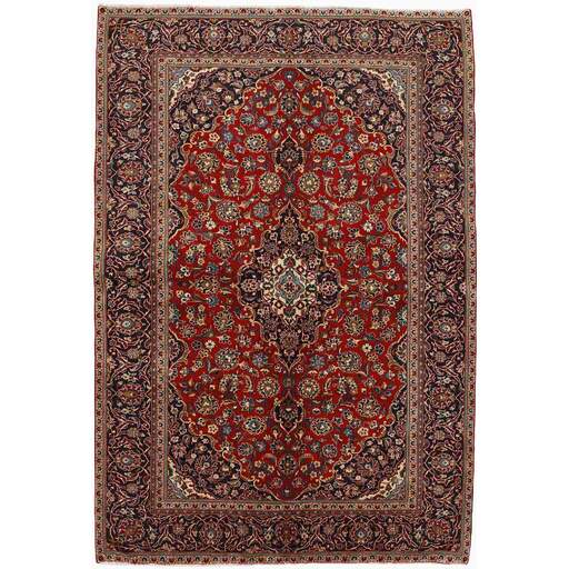 Keshan a toujours été célèbre pour son artisanat. Les villages se situent sur la route principale entre Ghom et Ispahan, dans le centre de l'Iran. À l'est, la région borde le plus grand désert d'Iran. Malgré le déclin de cet artisanat particulier au cours du XXe siècle, de nombreux tapis Keshan magnifiques sont toujours fabriqués conformément aux traditions des anciens maîtres, par exemple décorés de magnifiques motifs en médaillon ou de tapisseries représentant des motifs humains et animaux. Les motifs sont le plus souvent tissés autour d'un médaillon au centre du tapis, dont certains se répètent dans les coins. Les autres champs sont densément décorés de fleurs et de vignes réalistes. La bordure principale présente souvent le motif « Herati » (une feuille arquée), tandis que les bordures secondaires présentent des rosettes. Le rouge brique et le bleu foncé sont les couleurs de base les plus courantes. Keshan est une ville d'environ 300 000 habitants, située dans la province d'Ispahan, dans le centre de l'Iran. Elle est plutôt basse et il fait très chaud en été. Traditionnellement, les gens ont cherché à remédier à ce problème en construisant les maisons dans le sol. Keshan produit des tapis en laine et en soie. Les premiers ont une chaîne et une trame en coton, la trame étant bleue. Plusieurs qualités sont produites, mais la plupart des tapis Keshan sont très finement noués et entièrement couvrants. La forme d'un médaillon Keshan est assez particulière ; elle est faite d'une alternance de lignes courbes et d'angles droits. Les couleurs les plus courantes sont un champ rouge et un médaillon bleu, avec des détails secondaires dans d'autres couleurs. Les garnitures d'un tapis Keshan sont également spéciales ; la garniture principale est normalement entourée de rayures qui forment un motif géométrique, généralement de petits triangles bleus et rouges. Les tapis Keshan existent dans toutes les tailles. La ville de Natanez, au sud-est du pays, a donné son nom à des tapis d'image réalisés avec le même nouage que les Keshan.