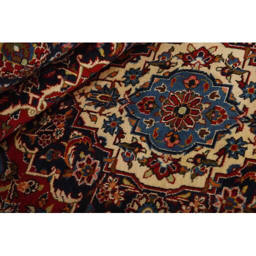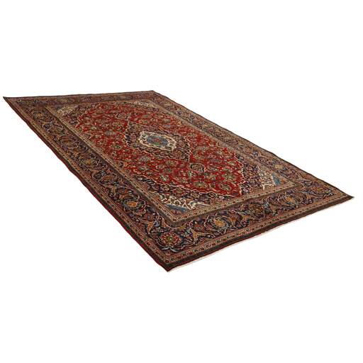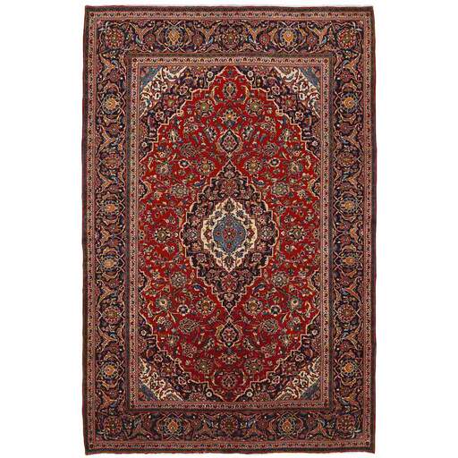Keshan a toujours été célèbre pour son artisanat. Les villages se situent sur la route principale entre Ghom et Ispahan, dans le centre de l'Iran. À l'est, la région borde le plus grand désert d'Iran. Malgré le déclin de cet artisanat particulier au cours du XXe siècle, de nombreux tapis Keshan magnifiques sont toujours fabriqués conformément aux traditions des anciens maîtres, par exemple décorés de magnifiques motifs en médaillon ou de tapisseries représentant des motifs humains et animaux. Les motifs sont le plus souvent tissés autour d'un médaillon au centre du tapis, dont certains se répètent dans les coins. Les autres champs sont densément décorés de fleurs et de vignes réalistes. La bordure principale présente souvent le motif « Herati » (une feuille arquée), tandis que les bordures secondaires présentent des rosettes. Le rouge brique et le bleu foncé sont les couleurs de base les plus courantes. Keshan est une ville d'environ 300 000 habitants, située dans la province d'Ispahan, dans le centre de l'Iran. Elle est plutôt basse et il fait très chaud en été. Traditionnellement, les gens ont cherché à remédier à ce problème en construisant les maisons dans le sol. Keshan produit des tapis en laine et en soie. Les premiers ont une chaîne et une trame en coton, la trame étant bleue. Plusieurs qualités sont produites, mais la plupart des tapis Keshan sont très finement noués et entièrement couvrants. La forme d'un médaillon Keshan est assez particulière ; elle est faite d'une alternance de lignes courbes et d'angles droits. Les couleurs les plus courantes sont un champ rouge et un médaillon bleu, avec des détails secondaires dans d'autres couleurs. Les garnitures d'un tapis Keshan sont également spéciales ; la garniture principale est normalement entourée de rayures qui forment un motif géométrique, généralement de petits triangles bleus et rouges. Les tapis Keshan existent dans toutes les tailles. La ville de Natanez, au sud-est du pays, a donné son nom à des tapis d'image réalisés avec le même nouage que les Keshan.