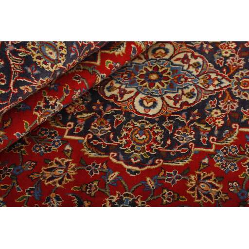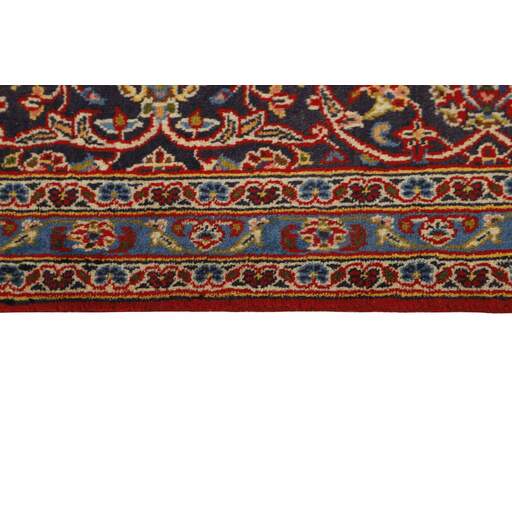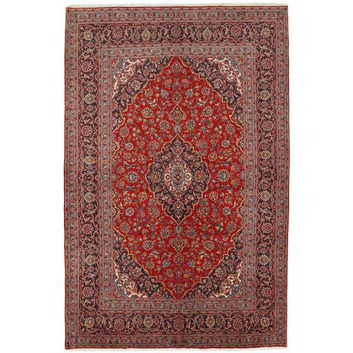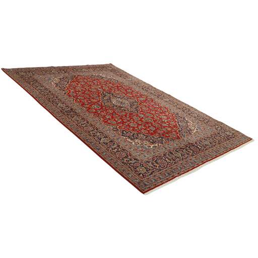 Keshan a toujours été célèbre pour son artisanat. Les villages se situent sur la route principale entre Ghom et Ispahan, dans le centre de l'Iran. À l'est, la région borde le plus grand désert d'Iran. Malgré le déclin de cet artisanat particulier au cours du XXe siècle, de nombreux tapis Keshan magnifiques sont toujours fabriqués conformément aux traditions des anciens maîtres, par exemple décorés de magnifiques motifs en médaillon ou de tapisseries représentant des motifs humains et animaux. Les motifs sont le plus souvent tissés autour d'un médaillon au centre du tapis, dont certains se répètent dans les coins. Les autres champs sont densément décorés de fleurs et de vignes réalistes. La bordure principale présente souvent le motif « Herati » (une feuille arquée), tandis que les bordures secondaires présentent des rosettes. Le rouge brique et le bleu foncé sont les couleurs de base les plus courantes. Keshan est une ville d'environ 300 000 habitants, située dans la province d'Ispahan, dans le centre de l'Iran. Elle est plutôt basse et il fait très chaud en été. Traditionnellement, les gens ont cherché à remédier à ce problème en construisant les maisons dans le sol. Keshan produit des tapis en laine et en soie. Les premiers ont une chaîne et une trame en coton, la trame étant bleue. Plusieurs qualités sont produites, mais la plupart des tapis Keshan sont très finement noués et entièrement couvrants. La forme d'un médaillon Keshan est assez particulière ; elle est faite d'une alternance de lignes courbes et d'angles droits. Les couleurs les plus courantes sont un champ rouge et un médaillon bleu, avec des détails secondaires dans d'autres couleurs. Les garnitures d'un tapis Keshan sont également spéciales ; la garniture principale est normalement entourée de rayures qui forment un motif géométrique, généralement de petits triangles bleus et rouges. Les tapis Keshan existent dans toutes les tailles. La ville de Natanez, au sud-est du pays, a donné son nom à des tapis d'image réalisés avec le même nouage que les Keshan.