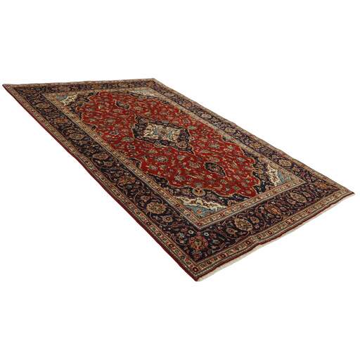 Keshan a toujours été célèbre pour son artisanat. Les villages se situent sur la route principale entre Ghom et Ispahan, dans le centre de l'Iran. À l'est, la région borde le plus grand désert d'Iran. Malgré le déclin de cet artisanat particulier au cours du XXe siècle, de nombreux tapis Keshan magnifiques sont toujours fabriqués conformément aux traditions des anciens maîtres, par exemple décorés de magnifiques motifs en médaillon ou de tapisseries représentant des motifs humains et animaux. Les motifs sont le plus souvent tissés autour d'un médaillon au centre du tapis, dont certains se répètent dans les coins. Les autres champs sont densément décorés de fleurs et de vignes réalistes. La bordure principale présente souvent le motif « Herati » (une feuille arquée), tandis que les bordures secondaires présentent des rosettes. Le rouge brique et le bleu foncé sont les couleurs de base les plus courantes. Keshan est une ville d'environ 300 000 habitants, située dans la province d'Ispahan, dans le centre de l'Iran. Elle est plutôt basse et il fait très chaud en été. Traditionnellement, les gens ont cherché à remédier à ce problème en construisant les maisons dans le sol. Keshan produit des tapis en laine et en soie. Les premiers ont une chaîne et une trame en coton, la trame étant bleue. Plusieurs qualités sont produites, mais la plupart des tapis Keshan sont très finement noués et entièrement couvrants. La forme d'un médaillon Keshan est assez particulière ; elle est faite d'une alternance de lignes courbes et d'angles droits. Les couleurs les plus courantes sont un champ rouge et un médaillon bleu, avec des détails secondaires dans d'autres couleurs. Les garnitures d'un tapis Keshan sont également spéciales ; la garniture principale est normalement entourée de rayures qui forment un motif géométrique, généralement de petits triangles bleus et rouges. Les tapis Keshan existent dans toutes les tailles. La ville de Natanez, au sud-est du pays, a donné son nom à des tapis d'image réalisés avec le même nouage que les Keshan.