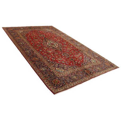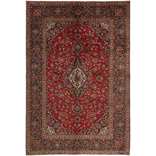 Keshan a toujours été célèbre pour son artisanat. Les villages se situent sur la route principale entre Ghom et Ispahan, dans le centre de l'Iran. À l'est, la région borde le plus grand désert d'Iran. Malgré le déclin de cet artisanat particulier au cours du XXe siècle, de nombreux tapis Keshan magnifiques sont toujours fabriqués conformément aux traditions des anciens maîtres, par exemple décorés de magnifiques motifs en médaillon ou de tapisseries représentant des motifs humains et animaux. Les motifs sont le plus souvent tissés autour d'un médaillon au centre du tapis, dont certains se répètent dans les coins. Les autres champs sont densément décorés de fleurs et de vignes réalistes. La bordure principale présente souvent le motif « Herati » (une feuille arquée), tandis que les bordures secondaires présentent des rosettes. Le rouge brique et le bleu foncé sont les couleurs de base les plus courantes. Keshan est une ville d'environ 300 000 habitants, située dans la province d'Ispahan, dans le centre de l'Iran. Elle est plutôt basse et il fait très chaud en été. Traditionnellement, les gens ont cherché à remédier à ce problème en construisant les maisons dans le sol. Keshan produit des tapis en laine et en soie. Les premiers ont une chaîne et une trame en coton, la trame étant bleue. Plusieurs qualités sont produites, mais la plupart des tapis Keshan sont très finement noués et entièrement couvrants. La forme d'un médaillon Keshan est assez particulière ; elle est faite d'une alternance de lignes courbes et d'angles droits. Les couleurs les plus courantes sont un champ rouge et un médaillon bleu, avec des détails secondaires dans d'autres couleurs. Les garnitures d'un tapis Keshan sont également spéciales ; la garniture principale est normalement entourée de rayures qui forment un motif géométrique, généralement de petits triangles bleus et rouges. Les tapis Keshan existent dans toutes les tailles. La ville de Natanez, au sud-est du pays, a donné son nom à des tapis d'image réalisés avec le même nouage que les Keshan.