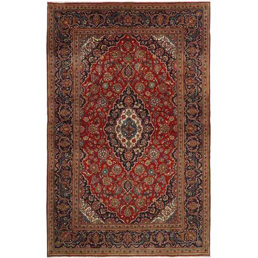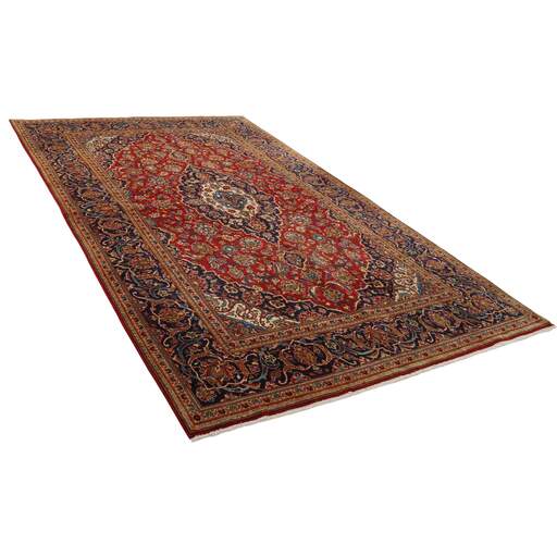 Keshan a toujours été célèbre pour son artisanat. Les villages se situent sur la route principale entre Ghom et Ispahan, dans le centre de l'Iran. À l'est, la région borde le plus grand désert d'Iran. Malgré le déclin de cet artisanat particulier au cours du XXe siècle, de nombreux tapis Keshan magnifiques sont toujours fabriqués conformément aux traditions des anciens maîtres, par exemple décorés de magnifiques motifs en médaillon ou de tapisseries représentant des motifs humains et animaux. Les motifs sont le plus souvent tissés autour d'un médaillon au centre du tapis, dont certains se répètent dans les coins. Les autres champs sont densément décorés de fleurs et de vignes réalistes. La bordure principale présente souvent le motif « Herati » (une feuille arquée), tandis que les bordures secondaires présentent des rosettes. Le rouge brique et le bleu foncé sont les couleurs de base les plus courantes. Keshan est une ville d'environ 300 000 habitants, située dans la province d'Ispahan, dans le centre de l'Iran. Elle est plutôt basse et il fait très chaud en été. Traditionnellement, les gens ont cherché à remédier à ce problème en construisant les maisons dans le sol. Keshan produit des tapis en laine et en soie. Les premiers ont une chaîne et une trame en coton, la trame étant bleue. Plusieurs qualités sont produites, mais la plupart des tapis Keshan sont très finement noués et entièrement couvrants. La forme d'un médaillon Keshan est assez particulière ; elle est faite d'une alternance de lignes courbes et d'angles droits. Les couleurs les plus courantes sont un champ rouge et un médaillon bleu, avec des détails secondaires dans d'autres couleurs. Les garnitures d'un tapis Keshan sont également spéciales ; la garniture principale est normalement entourée de rayures qui forment un motif géométrique, généralement de petits triangles bleus et rouges. Les tapis Keshan existent dans toutes les tailles. La ville de Natanez, au sud-est du pays, a donné son nom à des tapis d'image réalisés avec le même nouage que les Keshan.
