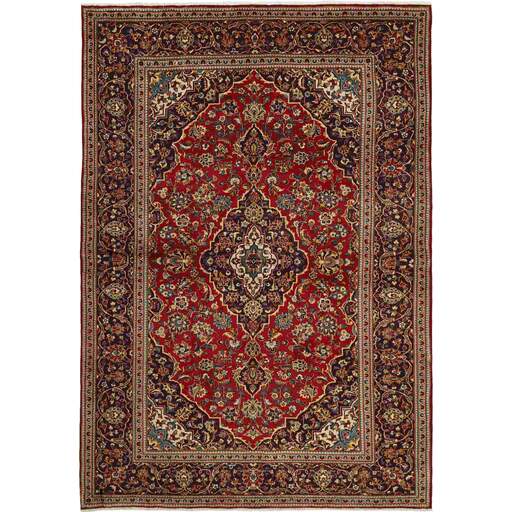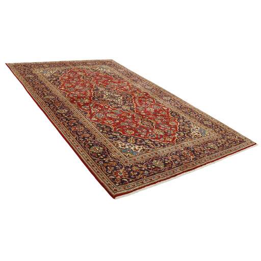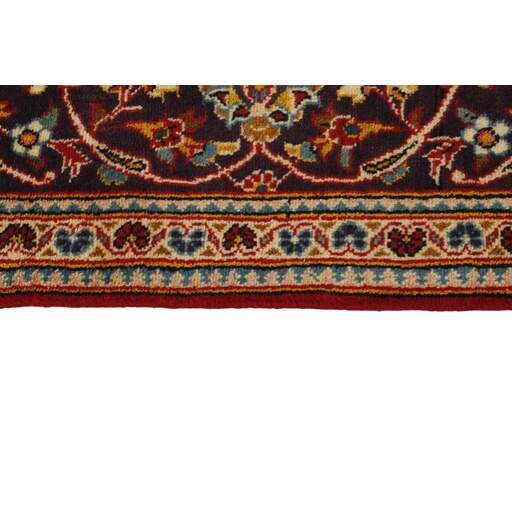Keshan a toujours été célèbre pour son artisanat. Les villages se situent sur la route principale entre Ghom et Ispahan, dans le centre de l'Iran. À l'est, la région borde le plus grand désert d'Iran. Malgré le déclin de cet artisanat particulier au cours du XXe siècle, de nombreux tapis Keshan magnifiques sont toujours fabriqués conformément aux traditions des anciens maîtres, par exemple décorés de magnifiques motifs en médaillon ou de tapisseries représentant des motifs humains et animaux. Les motifs sont le plus souvent tissés autour d'un médaillon au centre du tapis, dont certains se répètent dans les coins. Les autres champs sont densément décorés de fleurs et de vignes réalistes. La bordure principale présente souvent le motif « Herati » (une feuille arquée), tandis que les bordures secondaires présentent des rosettes. Le rouge brique et le bleu foncé sont les couleurs de base les plus courantes. Keshan est une ville d'environ 300 000 habitants, située dans la province d'Ispahan, dans le centre de l'Iran. Elle est plutôt basse et il fait très chaud en été. Traditionnellement, les gens ont cherché à remédier à ce problème en construisant les maisons dans le sol. Keshan produit des tapis en laine et en soie. Les premiers ont une chaîne et une trame en coton, la trame étant bleue. Plusieurs qualités sont produites, mais la plupart des tapis Keshan sont très finement noués et entièrement couvrants. La forme d'un médaillon Keshan est assez particulière ; elle est faite d'une alternance de lignes courbes et d'angles droits. Les couleurs les plus courantes sont un champ rouge et un médaillon bleu, avec des détails secondaires dans d'autres couleurs. Les garnitures d'un tapis Keshan sont également spéciales ; la garniture principale est normalement entourée de rayures qui forment un motif géométrique, généralement de petits triangles bleus et rouges. Les tapis Keshan existent dans toutes les tailles. La ville de Natanez, au sud-est du pays, a donné son nom à des tapis d'image réalisés avec le même nouage que les Keshan.