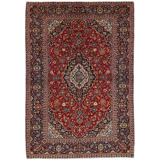Keshan a toujours été célèbre pour son artisanat. Les villages se situent sur la route principale entre Ghom et Ispahan, dans le centre de l'Iran. À l'est, la région borde le plus grand désert d'Iran. Malgré le déclin de cet artisanat particulier au cours du XXe siècle, de nombreux tapis Keshan magnifiques sont toujours fabriqués conformément aux traditions des anciens maîtres, par exemple décorés de magnifiques motifs en médaillon ou de tapisseries représentant des motifs humains et animaux. Les motifs sont le plus souvent tissés autour d'un médaillon au centre du tapis, dont certains se répètent dans les coins. Les autres champs sont densément décorés de fleurs et de vignes réalistes. La bordure principale présente souvent le motif « Herati » (une feuille arquée), tandis que les bordures secondaires présentent des rosettes. Le rouge brique et le bleu foncé sont les couleurs de base les plus courantes. Keshan est une ville d'environ 300 000 habitants, située dans la province d'Ispahan, dans le centre de l'Iran. Elle est plutôt basse et il fait très chaud en été. Traditionnellement, les gens ont cherché à remédier à ce problème en construisant les maisons dans le sol. Keshan produit des tapis en laine et en soie. Les premiers ont une chaîne et une trame en coton, la trame étant bleue. Plusieurs qualités sont produites, mais la plupart des tapis Keshan sont très finement noués et entièrement couvrants. La forme d'un médaillon Keshan est assez particulière ; elle est faite d'une alternance de lignes courbes et d'angles droits. Les couleurs les plus courantes sont un champ rouge et un médaillon bleu, avec des détails secondaires dans d'autres couleurs. Les garnitures d'un tapis Keshan sont également spéciales ; la garniture principale est normalement entourée de rayures qui forment un motif géométrique, généralement de petits triangles bleus et rouges. Les tapis Keshan existent dans toutes les tailles. La ville de Natanez, au sud-est du pays, a donné son nom à des tapis d'image réalisés avec le même nouage que les Keshan.