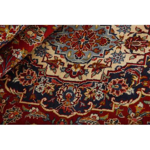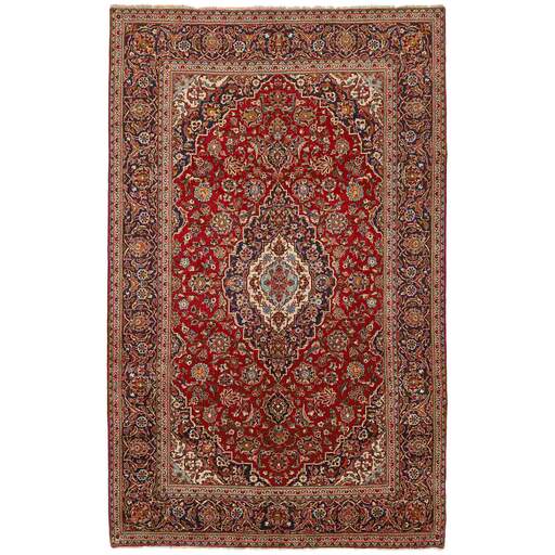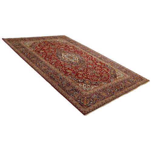 Keshan a toujours été célèbre pour son artisanat. Les villages se situent sur la route principale entre Ghom et Ispahan, dans le centre de l'Iran. À l'est, la région borde le plus grand désert d'Iran. Malgré le déclin de cet artisanat particulier au cours du XXe siècle, de nombreux tapis Keshan magnifiques sont toujours fabriqués conformément aux traditions des anciens maîtres, par exemple décorés de magnifiques motifs en médaillon ou de tapisseries représentant des motifs humains et animaux. Les motifs sont le plus souvent tissés autour d'un médaillon au centre du tapis, dont certains se répètent dans les coins. Les autres champs sont densément décorés de fleurs et de vignes réalistes. La bordure principale présente souvent le motif « Herati » (une feuille arquée), tandis que les bordures secondaires présentent des rosettes. Le rouge brique et le bleu foncé sont les couleurs de base les plus courantes. Keshan est une ville d'environ 300 000 habitants, située dans la province d'Ispahan, dans le centre de l'Iran. Elle est plutôt basse et il fait très chaud en été. Traditionnellement, les gens ont cherché à remédier à ce problème en construisant les maisons dans le sol. Keshan produit des tapis en laine et en soie. Les premiers ont une chaîne et une trame en coton, la trame étant bleue. Plusieurs qualités sont produites, mais la plupart des tapis Keshan sont très finement noués et entièrement couvrants. La forme d'un médaillon Keshan est assez particulière ; elle est faite d'une alternance de lignes courbes et d'angles droits. Les couleurs les plus courantes sont un champ rouge et un médaillon bleu, avec des détails secondaires dans d'autres couleurs. Les garnitures d'un tapis Keshan sont également spéciales ; la garniture principale est normalement entourée de rayures qui forment un motif géométrique, généralement de petits triangles bleus et rouges. Les tapis Keshan existent dans toutes les tailles. La ville de Natanez, au sud-est du pays, a donné son nom à des tapis d'image réalisés avec le même nouage que les Keshan.