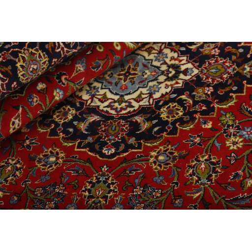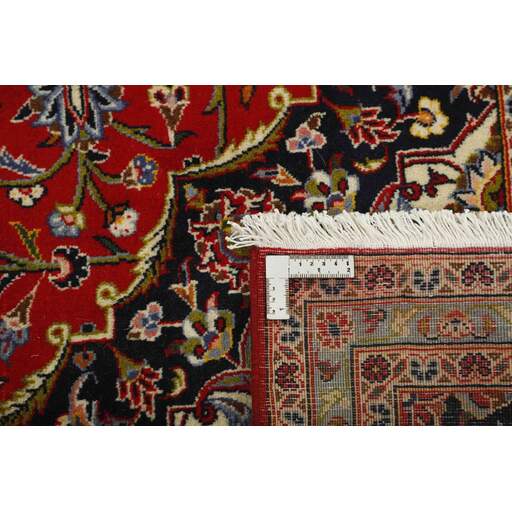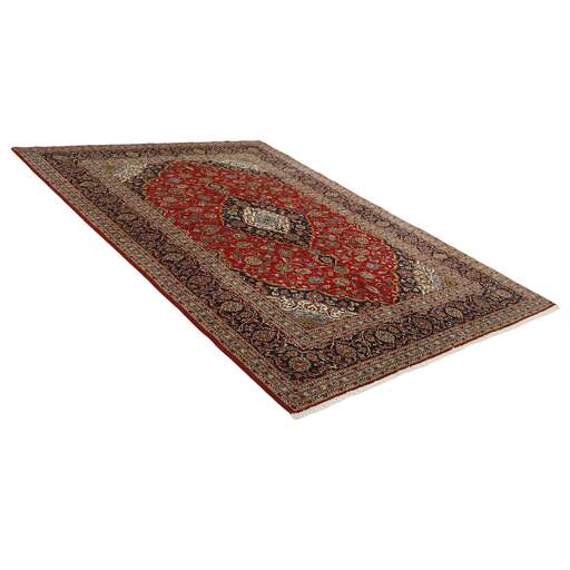 Keshan a toujours été célèbre pour son artisanat. Les villages se situent sur la route principale entre Ghom et Ispahan, dans le centre de l'Iran. À l'est, la région borde le plus grand désert d'Iran. Malgré le déclin de cet artisanat particulier au cours du XXe siècle, de nombreux tapis Keshan magnifiques sont toujours fabriqués conformément aux traditions des anciens maîtres, par exemple décorés de magnifiques motifs en médaillon ou de tapisseries représentant des motifs humains et animaux. Les motifs sont le plus souvent tissés autour d'un médaillon au centre du tapis, dont certains se répètent dans les coins. Les autres champs sont densément décorés de fleurs et de vignes réalistes. La bordure principale présente souvent le motif « Herati » (une feuille arquée), tandis que les bordures secondaires présentent des rosettes. Le rouge brique et le bleu foncé sont les couleurs de base les plus courantes. Keshan est une ville d'environ 300 000 habitants, située dans la province d'Ispahan, dans le centre de l'Iran. Elle est plutôt basse et il fait très chaud en été. Traditionnellement, les gens ont cherché à remédier à ce problème en construisant les maisons dans le sol. Keshan produit des tapis en laine et en soie. Les premiers ont une chaîne et une trame en coton, la trame étant bleue. Plusieurs qualités sont produites, mais la plupart des tapis Keshan sont très finement noués et entièrement couvrants. La forme d'un médaillon Keshan est assez particulière ; elle est faite d'une alternance de lignes courbes et d'angles droits. Les couleurs les plus courantes sont un champ rouge et un médaillon bleu, avec des détails secondaires dans d'autres couleurs. Les garnitures d'un tapis Keshan sont également spéciales ; la garniture principale est normalement entourée de rayures qui forment un motif géométrique, généralement de petits triangles bleus et rouges. Les tapis Keshan existent dans toutes les tailles. La ville de Natanez, au sud-est du pays, a donné son nom à des tapis d'image réalisés avec le même nouage que les Keshan.