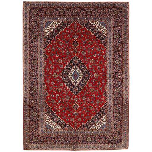 Keshan a toujours été célèbre pour son artisanat. Les villages se situent sur la route principale entre Ghom et Ispahan, dans le centre de l'Iran. À l'est, la région borde le plus grand désert d'Iran. Malgré le déclin de cet artisanat particulier au cours du XXe siècle, de nombreux tapis Keshan magnifiques sont toujours fabriqués conformément aux traditions des anciens maîtres, par exemple décorés de magnifiques motifs en médaillon ou de tapisseries représentant des motifs humains et animaux. Les motifs sont le plus souvent tissés autour d'un médaillon au centre du tapis, dont certains se répètent dans les coins. Les autres champs sont densément décorés de fleurs et de vignes réalistes. La bordure principale présente souvent le motif « Herati » (une feuille arquée), tandis que les bordures secondaires présentent des rosettes. Le rouge brique et le bleu foncé sont les couleurs de base les plus courantes. Keshan est une ville d'environ 300 000 habitants, située dans la province d'Ispahan, dans le centre de l'Iran. Elle est plutôt basse et il fait très chaud en été. Traditionnellement, les gens ont cherché à remédier à ce problème en construisant les maisons dans le sol. Keshan produit des tapis en laine et en soie. Les premiers ont une chaîne et une trame en coton, la trame étant bleue. Plusieurs qualités sont produites, mais la plupart des tapis Keshan sont très finement noués et entièrement couvrants. La forme d'un médaillon Keshan est assez particulière ; elle est faite d'une alternance de lignes courbes et d'angles droits. Les couleurs les plus courantes sont un champ rouge et un médaillon bleu, avec des détails secondaires dans d'autres couleurs. Les garnitures d'un tapis Keshan sont également spéciales ; la garniture principale est normalement entourée de rayures qui forment un motif géométrique, généralement de petits triangles bleus et rouges. Les tapis Keshan existent dans toutes les tailles. La ville de Natanez, au sud-est du pays, a donné son nom à des tapis d'image réalisés avec le même nouage que les Keshan.
