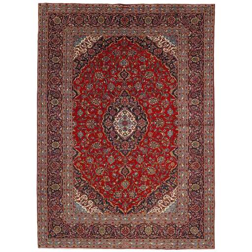 Keshan a toujours été célèbre pour son artisanat. Les villages se situent sur la route principale entre Ghom et Ispahan, dans le centre de l'Iran. À l'est, la région borde le plus grand désert d'Iran. Malgré le déclin de cet artisanat particulier au cours du XXe siècle, de nombreux tapis Keshan magnifiques sont toujours fabriqués conformément aux traditions des anciens maîtres, par exemple décorés de magnifiques motifs en médaillon ou de tapisseries représentant des motifs humains et animaux. Les motifs sont le plus souvent tissés autour d'un médaillon au centre du tapis, dont certains se répètent dans les coins. Les autres champs sont densément décorés de fleurs et de vignes réalistes. La bordure principale présente souvent le motif « Herati » (une feuille arquée), tandis que les bordures secondaires présentent des rosettes. Le rouge brique et le bleu foncé sont les couleurs de base les plus courantes. Keshan est une ville d'environ 300 000 habitants, située dans la province d'Ispahan, dans le centre de l'Iran. Elle est plutôt basse et il fait très chaud en été. Traditionnellement, les gens ont cherché à remédier à ce problème en construisant les maisons dans le sol. Keshan produit des tapis en laine et en soie. Les premiers ont une chaîne et une trame en coton, la trame étant bleue. Plusieurs qualités sont produites, mais la plupart des tapis Keshan sont très finement noués et entièrement couvrants. La forme d'un médaillon Keshan est assez particulière ; elle est faite d'une alternance de lignes courbes et d'angles droits. Les couleurs les plus courantes sont un champ rouge et un médaillon bleu, avec des détails secondaires dans d'autres couleurs. Les garnitures d'un tapis Keshan sont également spéciales ; la garniture principale est normalement entourée de rayures qui forment un motif géométrique, généralement de petits triangles bleus et rouges. Les tapis Keshan existent dans toutes les tailles. La ville de Natanez, au sud-est du pays, a donné son nom à des tapis d'image réalisés avec le même nouage que les Keshan.