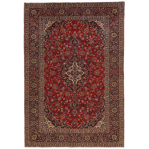 Keshan a toujours été célèbre pour son artisanat. Les villages se situent sur la route principale entre Ghom et Ispahan, dans le centre de l'Iran. À l'est, la région borde le plus grand désert d'Iran. Malgré le déclin de cet artisanat particulier au cours du XXe siècle, de nombreux tapis Keshan magnifiques sont toujours fabriqués conformément aux traditions des anciens maîtres, par exemple décorés de magnifiques motifs en médaillon ou de tapisseries représentant des motifs humains et animaux. Les motifs sont le plus souvent tissés autour d'un médaillon au centre du tapis, dont certains se répètent dans les coins. Les autres champs sont densément décorés de fleurs et de vignes réalistes. La bordure principale présente souvent le motif « Herati » (une feuille arquée), tandis que les bordures secondaires présentent des rosettes. Le rouge brique et le bleu foncé sont les couleurs de base les plus courantes. Keshan est une ville d'environ 300 000 habitants, située dans la province d'Ispahan, dans le centre de l'Iran. Elle est plutôt basse et il fait très chaud en été. Traditionnellement, les gens ont cherché à remédier à ce problème en construisant les maisons dans le sol. Keshan produit des tapis en laine et en soie. Les premiers ont une chaîne et une trame en coton, la trame étant bleue. Plusieurs qualités sont produites, mais la plupart des tapis Keshan sont très finement noués et entièrement couvrants. La forme d'un médaillon Keshan est assez particulière ; elle est faite d'une alternance de lignes courbes et d'angles droits. Les couleurs les plus courantes sont un champ rouge et un médaillon bleu, avec des détails secondaires dans d'autres couleurs. Les garnitures d'un tapis Keshan sont également spéciales ; la garniture principale est normalement entourée de rayures qui forment un motif géométrique, généralement de petits triangles bleus et rouges. Les tapis Keshan existent dans toutes les tailles. La ville de Natanez, au sud-est du pays, a donné son nom à des tapis d'image réalisés avec le même nouage que les Keshan.
