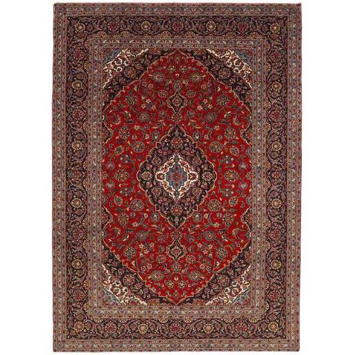 Keshan a toujours été célèbre pour son artisanat. Les villages se situent sur la route principale entre Ghom et Ispahan, dans le centre de l'Iran. À l'est, la région borde le plus grand désert d'Iran. Malgré le déclin de cet artisanat particulier au cours du XXe siècle, de nombreux tapis Keshan magnifiques sont toujours fabriqués conformément aux traditions des anciens maîtres, par exemple décorés de magnifiques motifs en médaillon ou de tapisseries représentant des motifs humains et animaux. Les motifs sont le plus souvent tissés autour d'un médaillon au centre du tapis, dont certains se répètent dans les coins. Les autres champs sont densément décorés de fleurs et de vignes réalistes. La bordure principale présente souvent le motif « Herati » (une feuille arquée), tandis que les bordures secondaires présentent des rosettes. Le rouge brique et le bleu foncé sont les couleurs de base les plus courantes. Keshan est une ville d'environ 300 000 habitants, située dans la province d'Ispahan, dans le centre de l'Iran. Elle est plutôt basse et il fait très chaud en été. Traditionnellement, les gens ont cherché à remédier à ce problème en construisant les maisons dans le sol. Keshan produit des tapis en laine et en soie. Les premiers ont une chaîne et une trame en coton, la trame étant bleue. Plusieurs qualités sont produites, mais la plupart des tapis Keshan sont très finement noués et entièrement couvrants. La forme d'un médaillon Keshan est assez particulière ; elle est faite d'une alternance de lignes courbes et d'angles droits. Les couleurs les plus courantes sont un champ rouge et un médaillon bleu, avec des détails secondaires dans d'autres couleurs. Les garnitures d'un tapis Keshan sont également spéciales ; la garniture principale est normalement entourée de rayures qui forment un motif géométrique, généralement de petits triangles bleus et rouges. Les tapis Keshan existent dans toutes les tailles. La ville de Natanez, au sud-est du pays, a donné son nom à des tapis d'image réalisés avec le même nouage que les Keshan.