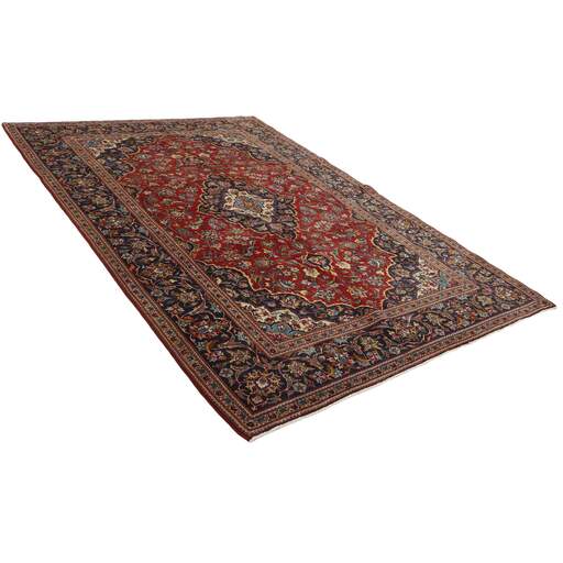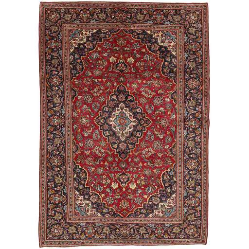 Keshan a toujours été célèbre pour son artisanat. Les villages se situent sur la route principale entre Ghom et Ispahan, dans le centre de l'Iran. À l'est, la région borde le plus grand désert d'Iran. Malgré le déclin de cet artisanat particulier au cours du XXe siècle, de nombreux tapis Keshan magnifiques sont toujours fabriqués conformément aux traditions des anciens maîtres, par exemple décorés de magnifiques motifs en médaillon ou de tapisseries représentant des motifs humains et animaux. Les motifs sont le plus souvent tissés autour d'un médaillon au centre du tapis, dont certains se répètent dans les coins. Les autres champs sont densément décorés de fleurs et de vignes réalistes. La bordure principale présente souvent le motif « Herati » (une feuille arquée), tandis que les bordures secondaires présentent des rosettes. Le rouge brique et le bleu foncé sont les couleurs de base les plus courantes. Keshan est une ville d'environ 300 000 habitants, située dans la province d'Ispahan, dans le centre de l'Iran. Elle est plutôt basse et il fait très chaud en été. Traditionnellement, les gens ont cherché à remédier à ce problème en construisant les maisons dans le sol. Keshan produit des tapis en laine et en soie. Les premiers ont une chaîne et une trame en coton, la trame étant bleue. Plusieurs qualités sont produites, mais la plupart des tapis Keshan sont très finement noués et entièrement couvrants. La forme d'un médaillon Keshan est assez particulière ; elle est faite d'une alternance de lignes courbes et d'angles droits. Les couleurs les plus courantes sont un champ rouge et un médaillon bleu, avec des détails secondaires dans d'autres couleurs. Les garnitures d'un tapis Keshan sont également spéciales ; la garniture principale est normalement entourée de rayures qui forment un motif géométrique, généralement de petits triangles bleus et rouges. Les tapis Keshan existent dans toutes les tailles. La ville de Natanez, au sud-est du pays, a donné son nom à des tapis d'image réalisés avec le même nouage que les Keshan.