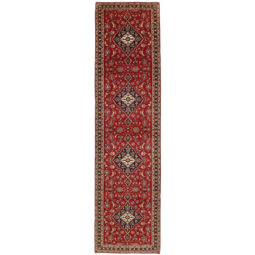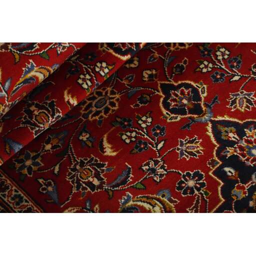 Keshan a toujours été célèbre pour son artisanat. Les villages se situent sur la route principale entre Ghom et Ispahan, dans le centre de l'Iran. À l'est, la région borde le plus grand désert d'Iran. Malgré le déclin de cet artisanat particulier au cours du XXe siècle, de nombreux tapis Keshan magnifiques sont toujours fabriqués conformément aux traditions des anciens maîtres, par exemple décorés de magnifiques motifs en médaillon ou de tapisseries représentant des motifs humains et animaux. Les motifs sont le plus souvent tissés autour d'un médaillon au centre du tapis, dont certains se répètent dans les coins. Les autres champs sont densément décorés de fleurs et de vignes réalistes. La bordure principale présente souvent le motif « Herati » (une feuille arquée), tandis que les bordures secondaires présentent des rosettes. Le rouge brique et le bleu foncé sont les couleurs de base les plus courantes. Keshan est une ville d'environ 300 000 habitants, située dans la province d'Ispahan, dans le centre de l'Iran. Elle est plutôt basse et il fait très chaud en été. Traditionnellement, les gens ont cherché à remédier à ce problème en construisant les maisons dans le sol. Keshan produit des tapis en laine et en soie. Les premiers ont une chaîne et une trame en coton, la trame étant bleue. Plusieurs qualités sont produites, mais la plupart des tapis Keshan sont très finement noués et entièrement couvrants. La forme d'un médaillon Keshan est assez particulière ; elle est faite d'une alternance de lignes courbes et d'angles droits. Les couleurs les plus courantes sont un champ rouge et un médaillon bleu, avec des détails secondaires dans d'autres couleurs. Les garnitures d'un tapis Keshan sont également spéciales ; la garniture principale est normalement entourée de rayures qui forment un motif géométrique, généralement de petits triangles bleus et rouges. Les tapis Keshan existent dans toutes les tailles. La ville de Natanez, au sud-est du pays, a donné son nom à des tapis d'image réalisés avec le même nouage que les Keshan.
