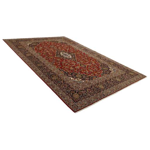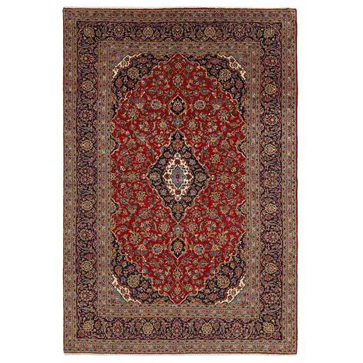 Keshan a toujours été célèbre pour son artisanat. Les villages se situent sur la route principale entre Ghom et Ispahan, dans le centre de l'Iran. À l'est, la région borde le plus grand désert d'Iran. Malgré le déclin de cet artisanat particulier au cours du XXe siècle, de nombreux tapis Keshan magnifiques sont toujours fabriqués conformément aux traditions des anciens maîtres, par exemple décorés de magnifiques motifs en médaillon ou de tapisseries représentant des motifs humains et animaux. Les motifs sont le plus souvent tissés autour d'un médaillon au centre du tapis, dont certains se répètent dans les coins. Les autres champs sont densément décorés de fleurs et de vignes réalistes. La bordure principale présente souvent le motif « Herati » (une feuille arquée), tandis que les bordures secondaires présentent des rosettes. Le rouge brique et le bleu foncé sont les couleurs de base les plus courantes. Keshan est une ville d'environ 300 000 habitants, située dans la province d'Ispahan, dans le centre de l'Iran. Elle est plutôt basse et il fait très chaud en été. Traditionnellement, les gens ont cherché à remédier à ce problème en construisant les maisons dans le sol. Keshan produit des tapis en laine et en soie. Les premiers ont une chaîne et une trame en coton, la trame étant bleue. Plusieurs qualités sont produites, mais la plupart des tapis Keshan sont très finement noués et entièrement couvrants. La forme d'un médaillon Keshan est assez particulière ; elle est faite d'une alternance de lignes courbes et d'angles droits. Les couleurs les plus courantes sont un champ rouge et un médaillon bleu, avec des détails secondaires dans d'autres couleurs. Les garnitures d'un tapis Keshan sont également spéciales ; la garniture principale est normalement entourée de rayures qui forment un motif géométrique, généralement de petits triangles bleus et rouges. Les tapis Keshan existent dans toutes les tailles. La ville de Natanez, au sud-est du pays, a donné son nom à des tapis d'image réalisés avec le même nouage que les Keshan.