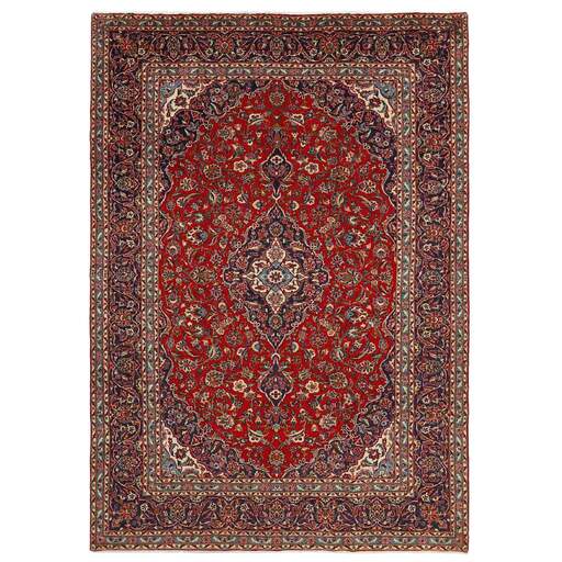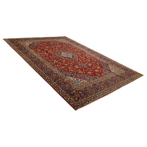 Keshan a toujours été célèbre pour son artisanat. Les villages se situent sur la route principale entre Ghom et Ispahan, dans le centre de l'Iran. À l'est, la région borde le plus grand désert d'Iran. Malgré le déclin de cet artisanat particulier au cours du XXe siècle, de nombreux tapis Keshan magnifiques sont toujours fabriqués conformément aux traditions des anciens maîtres, par exemple décorés de magnifiques motifs en médaillon ou de tapisseries représentant des motifs humains et animaux. Les motifs sont le plus souvent tissés autour d'un médaillon au centre du tapis, dont certains se répètent dans les coins. Les autres champs sont densément décorés de fleurs et de vignes réalistes. La bordure principale présente souvent le motif « Herati » (une feuille arquée), tandis que les bordures secondaires présentent des rosettes. Le rouge brique et le bleu foncé sont les couleurs de base les plus courantes. Keshan est une ville d'environ 300 000 habitants, située dans la province d'Ispahan, dans le centre de l'Iran. Elle est plutôt basse et il fait très chaud en été. Traditionnellement, les gens ont cherché à remédier à ce problème en construisant les maisons dans le sol. Keshan produit des tapis en laine et en soie. Les premiers ont une chaîne et une trame en coton, la trame étant bleue. Plusieurs qualités sont produites, mais la plupart des tapis Keshan sont très finement noués et entièrement couvrants. La forme d'un médaillon Keshan est assez particulière ; elle est faite d'une alternance de lignes courbes et d'angles droits. Les couleurs les plus courantes sont un champ rouge et un médaillon bleu, avec des détails secondaires dans d'autres couleurs. Les garnitures d'un tapis Keshan sont également spéciales ; la garniture principale est normalement entourée de rayures qui forment un motif géométrique, généralement de petits triangles bleus et rouges. Les tapis Keshan existent dans toutes les tailles. La ville de Natanez, au sud-est du pays, a donné son nom à des tapis d'image réalisés avec le même nouage que les Keshan.