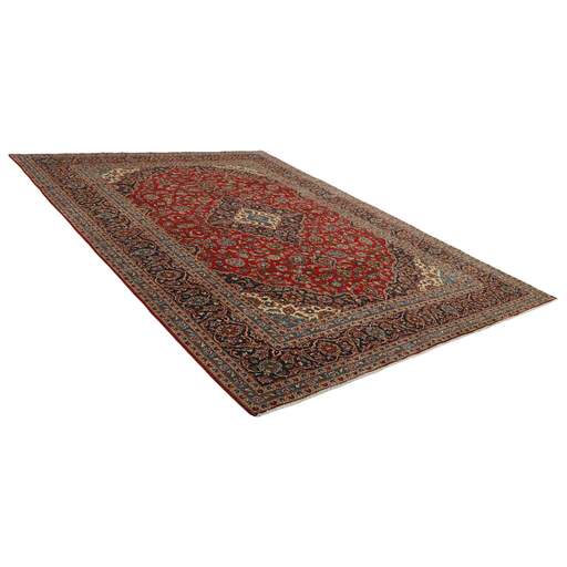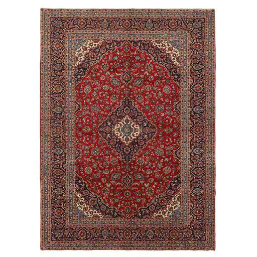 Keshan a toujours été célèbre pour son artisanat. Les villages se situent sur la route principale entre Ghom et Ispahan, dans le centre de l'Iran. À l'est, la région borde le plus grand désert d'Iran. Malgré le déclin de cet artisanat particulier au cours du XXe siècle, de nombreux tapis Keshan magnifiques sont toujours fabriqués conformément aux traditions des anciens maîtres, par exemple décorés de magnifiques motifs en médaillon ou de tapisseries représentant des motifs humains et animaux. Les motifs sont le plus souvent tissés autour d'un médaillon au centre du tapis, dont certains se répètent dans les coins. Les autres champs sont densément décorés de fleurs et de vignes réalistes. La bordure principale présente souvent le motif « Herati » (une feuille arquée), tandis que les bordures secondaires présentent des rosettes. Le rouge brique et le bleu foncé sont les couleurs de base les plus courantes. Keshan est une ville d'environ 300 000 habitants, située dans la province d'Ispahan, dans le centre de l'Iran. Elle est plutôt basse et il fait très chaud en été. Traditionnellement, les gens ont cherché à remédier à ce problème en construisant les maisons dans le sol. Keshan produit des tapis en laine et en soie. Les premiers ont une chaîne et une trame en coton, la trame étant bleue. Plusieurs qualités sont produites, mais la plupart des tapis Keshan sont très finement noués et entièrement couvrants. La forme d'un médaillon Keshan est assez particulière ; elle est faite d'une alternance de lignes courbes et d'angles droits. Les couleurs les plus courantes sont un champ rouge et un médaillon bleu, avec des détails secondaires dans d'autres couleurs. Les garnitures d'un tapis Keshan sont également spéciales ; la garniture principale est normalement entourée de rayures qui forment un motif géométrique, généralement de petits triangles bleus et rouges. Les tapis Keshan existent dans toutes les tailles. La ville de Natanez, au sud-est du pays, a donné son nom à des tapis d'image réalisés avec le même nouage que les Keshan.