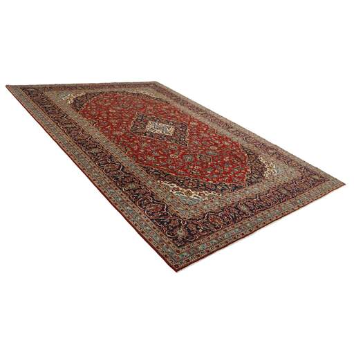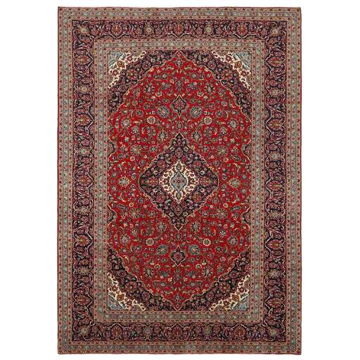 Keshan a toujours été célèbre pour son artisanat. Les villages se situent sur la route principale entre Ghom et Ispahan, dans le centre de l'Iran. À l'est, la région borde le plus grand désert d'Iran. Malgré le déclin de cet artisanat particulier au cours du XXe siècle, de nombreux tapis Keshan magnifiques sont toujours fabriqués conformément aux traditions des anciens maîtres, par exemple décorés de magnifiques motifs en médaillon ou de tapisseries représentant des motifs humains et animaux. Les motifs sont le plus souvent tissés autour d'un médaillon au centre du tapis, dont certains se répètent dans les coins. Les autres champs sont densément décorés de fleurs et de vignes réalistes. La bordure principale présente souvent le motif « Herati » (une feuille arquée), tandis que les bordures secondaires présentent des rosettes. Le rouge brique et le bleu foncé sont les couleurs de base les plus courantes. Keshan est une ville d'environ 300 000 habitants, située dans la province d'Ispahan, dans le centre de l'Iran. Elle est plutôt basse et il fait très chaud en été. Traditionnellement, les gens ont cherché à remédier à ce problème en construisant les maisons dans le sol. Keshan produit des tapis en laine et en soie. Les premiers ont une chaîne et une trame en coton, la trame étant bleue. Plusieurs qualités sont produites, mais la plupart des tapis Keshan sont très finement noués et entièrement couvrants. La forme d'un médaillon Keshan est assez particulière ; elle est faite d'une alternance de lignes courbes et d'angles droits. Les couleurs les plus courantes sont un champ rouge et un médaillon bleu, avec des détails secondaires dans d'autres couleurs. Les garnitures d'un tapis Keshan sont également spéciales ; la garniture principale est normalement entourée de rayures qui forment un motif géométrique, généralement de petits triangles bleus et rouges. Les tapis Keshan existent dans toutes les tailles. La ville de Natanez, au sud-est du pays, a donné son nom à des tapis d'image réalisés avec le même nouage que les Keshan.