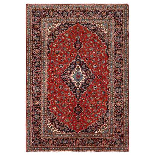 Keshan a toujours été célèbre pour son artisanat. Les villages se situent sur la route principale entre Ghom et Ispahan, dans le centre de l'Iran. À l'est, la région borde le plus grand désert d'Iran. Malgré le déclin de cet artisanat particulier au cours du XXe siècle, de nombreux tapis Keshan magnifiques sont toujours fabriqués conformément aux traditions des anciens maîtres, par exemple décorés de magnifiques motifs en médaillon ou de tapisseries représentant des motifs humains et animaux. Les motifs sont le plus souvent tissés autour d'un médaillon au centre du tapis, dont certains se répètent dans les coins. Les autres champs sont densément décorés de fleurs et de vignes réalistes. La bordure principale présente souvent le motif « Herati » (une feuille arquée), tandis que les bordures secondaires présentent des rosettes. Le rouge brique et le bleu foncé sont les couleurs de base les plus courantes. Keshan est une ville d'environ 300 000 habitants, située dans la province d'Ispahan, dans le centre de l'Iran. Elle est plutôt basse et il fait très chaud en été. Traditionnellement, les gens ont cherché à remédier à ce problème en construisant les maisons dans le sol. Keshan produit des tapis en laine et en soie. Les premiers ont une chaîne et une trame en coton, la trame étant bleue. Plusieurs qualités sont produites, mais la plupart des tapis Keshan sont très finement noués et entièrement couvrants. La forme d'un médaillon Keshan est assez particulière ; elle est faite d'une alternance de lignes courbes et d'angles droits. Les couleurs les plus courantes sont un champ rouge et un médaillon bleu, avec des détails secondaires dans d'autres couleurs. Les garnitures d'un tapis Keshan sont également spéciales ; la garniture principale est normalement entourée de rayures qui forment un motif géométrique, généralement de petits triangles bleus et rouges. Les tapis Keshan existent dans toutes les tailles. La ville de Natanez, au sud-est du pays, a donné son nom à des tapis d'image réalisés avec le même nouage que les Keshan.