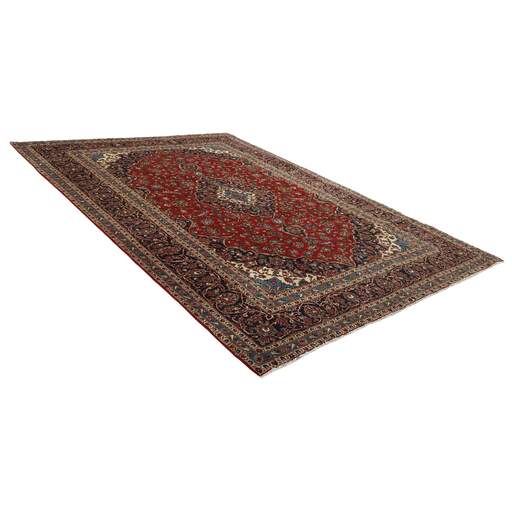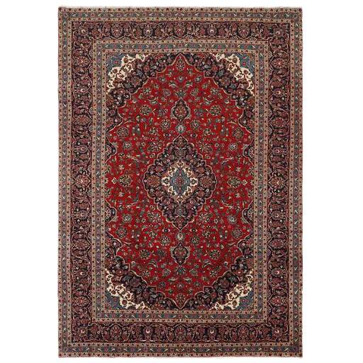 Keshan a toujours été célèbre pour son artisanat. Les villages se situent sur la route principale entre Ghom et Ispahan, dans le centre de l'Iran. À l'est, la région borde le plus grand désert d'Iran. Malgré le déclin de cet artisanat particulier au cours du XXe siècle, de nombreux tapis Keshan magnifiques sont toujours fabriqués conformément aux traditions des anciens maîtres, par exemple décorés de magnifiques motifs en médaillon ou de tapisseries représentant des motifs humains et animaux. Les motifs sont le plus souvent tissés autour d'un médaillon au centre du tapis, dont certains se répètent dans les coins. Les autres champs sont densément décorés de fleurs et de vignes réalistes. La bordure principale présente souvent le motif « Herati » (une feuille arquée), tandis que les bordures secondaires présentent des rosettes. Le rouge brique et le bleu foncé sont les couleurs de base les plus courantes. Keshan est une ville d'environ 300 000 habitants, située dans la province d'Ispahan, dans le centre de l'Iran. Elle est plutôt basse et il fait très chaud en été. Traditionnellement, les gens ont cherché à remédier à ce problème en construisant les maisons dans le sol. Keshan produit des tapis en laine et en soie. Les premiers ont une chaîne et une trame en coton, la trame étant bleue. Plusieurs qualités sont produites, mais la plupart des tapis Keshan sont très finement noués et entièrement couvrants. La forme d'un médaillon Keshan est assez particulière ; elle est faite d'une alternance de lignes courbes et d'angles droits. Les couleurs les plus courantes sont un champ rouge et un médaillon bleu, avec des détails secondaires dans d'autres couleurs. Les garnitures d'un tapis Keshan sont également spéciales ; la garniture principale est normalement entourée de rayures qui forment un motif géométrique, généralement de petits triangles bleus et rouges. Les tapis Keshan existent dans toutes les tailles. La ville de Natanez, au sud-est du pays, a donné son nom à des tapis d'image réalisés avec le même nouage que les Keshan.