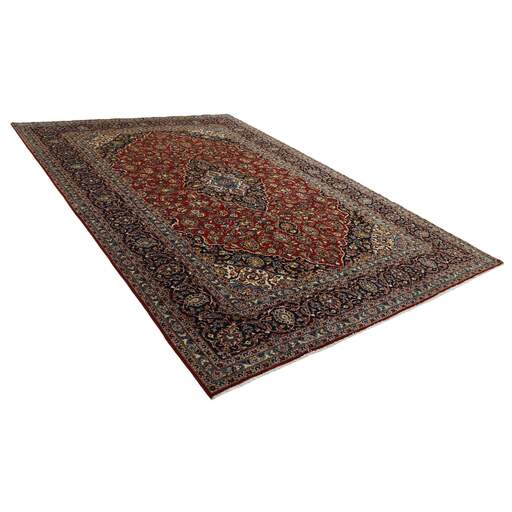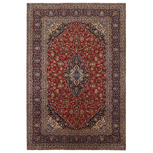 Keshan a toujours été célèbre pour son artisanat. Les villages se situent sur la route principale entre Ghom et Ispahan, dans le centre de l'Iran. À l'est, la région borde le plus grand désert d'Iran. Malgré le déclin de cet artisanat particulier au cours du XXe siècle, de nombreux tapis Keshan magnifiques sont toujours fabriqués conformément aux traditions des anciens maîtres, par exemple décorés de magnifiques motifs en médaillon ou de tapisseries représentant des motifs humains et animaux. Les motifs sont le plus souvent tissés autour d'un médaillon au centre du tapis, dont certains se répètent dans les coins. Les autres champs sont densément décorés de fleurs et de vignes réalistes. La bordure principale présente souvent le motif « Herati » (une feuille arquée), tandis que les bordures secondaires présentent des rosettes. Le rouge brique et le bleu foncé sont les couleurs de base les plus courantes. Keshan est une ville d'environ 300 000 habitants, située dans la province d'Ispahan, dans le centre de l'Iran. Elle est plutôt basse et il fait très chaud en été. Traditionnellement, les gens ont cherché à remédier à ce problème en construisant les maisons dans le sol. Keshan produit des tapis en laine et en soie. Les premiers ont une chaîne et une trame en coton, la trame étant bleue. Plusieurs qualités sont produites, mais la plupart des tapis Keshan sont très finement noués et entièrement couvrants. La forme d'un médaillon Keshan est assez particulière ; elle est faite d'une alternance de lignes courbes et d'angles droits. Les couleurs les plus courantes sont un champ rouge et un médaillon bleu, avec des détails secondaires dans d'autres couleurs. Les garnitures d'un tapis Keshan sont également spéciales ; la garniture principale est normalement entourée de rayures qui forment un motif géométrique, généralement de petits triangles bleus et rouges. Les tapis Keshan existent dans toutes les tailles. La ville de Natanez, au sud-est du pays, a donné son nom à des tapis d'image réalisés avec le même nouage que les Keshan.