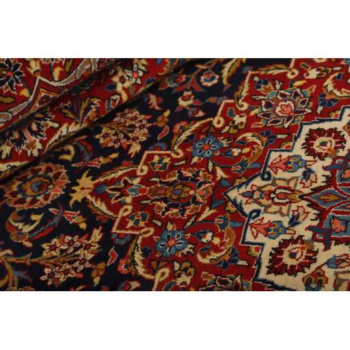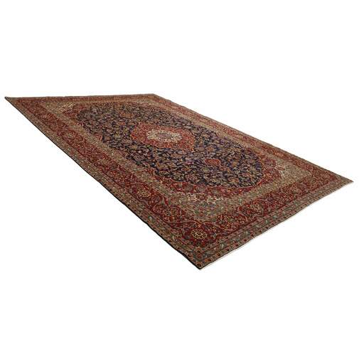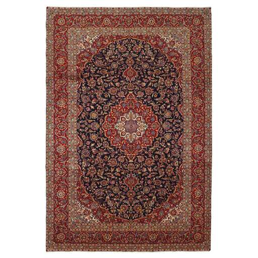Keshan a toujours été célèbre pour son artisanat. Les villages se situent sur la route principale entre Ghom et Ispahan, dans le centre de l'Iran. À l'est, la région borde le plus grand désert d'Iran. Malgré le déclin de cet artisanat particulier au cours du XXe siècle, de nombreux tapis Keshan magnifiques sont toujours fabriqués conformément aux traditions des anciens maîtres, par exemple décorés de magnifiques motifs en médaillon ou de tapisseries représentant des motifs humains et animaux. Les motifs sont le plus souvent tissés autour d'un médaillon au centre du tapis, dont certains se répètent dans les coins. Les autres champs sont densément décorés de fleurs et de vignes réalistes. La bordure principale présente souvent le motif « Herati » (une feuille arquée), tandis que les bordures secondaires présentent des rosettes. Le rouge brique et le bleu foncé sont les couleurs de base les plus courantes. Keshan est une ville d'environ 300 000 habitants, située dans la province d'Ispahan, dans le centre de l'Iran. Elle est plutôt basse et il fait très chaud en été. Traditionnellement, les gens ont cherché à remédier à ce problème en construisant les maisons dans le sol. Keshan produit des tapis en laine et en soie. Les premiers ont une chaîne et une trame en coton, la trame étant bleue. Plusieurs qualités sont produites, mais la plupart des tapis Keshan sont très finement noués et entièrement couvrants. La forme d'un médaillon Keshan est assez particulière ; elle est faite d'une alternance de lignes courbes et d'angles droits. Les couleurs les plus courantes sont un champ rouge et un médaillon bleu, avec des détails secondaires dans d'autres couleurs. Les garnitures d'un tapis Keshan sont également spéciales ; la garniture principale est normalement entourée de rayures qui forment un motif géométrique, généralement de petits triangles bleus et rouges. Les tapis Keshan existent dans toutes les tailles. La ville de Natanez, au sud-est du pays, a donné son nom à des tapis d'image réalisés avec le même nouage que les Keshan.