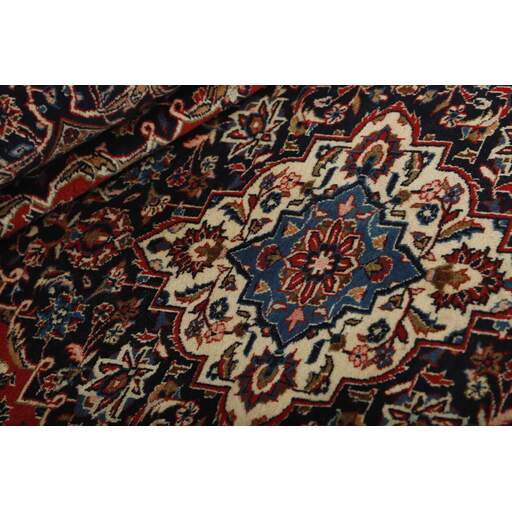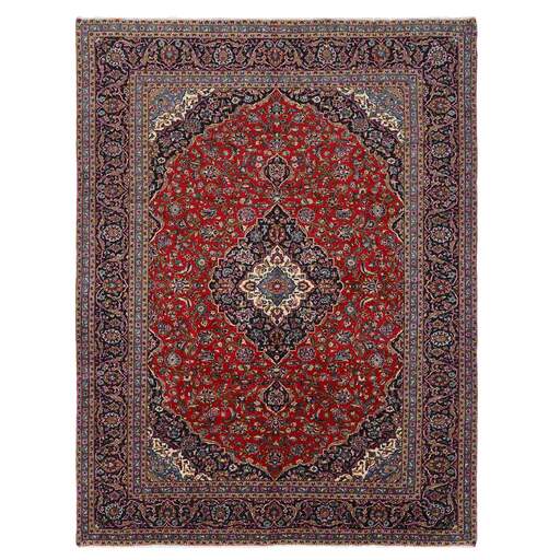 Keshan a toujours été célèbre pour son artisanat. Les villages se situent sur la route principale entre Ghom et Ispahan, dans le centre de l'Iran. À l'est, la région borde le plus grand désert d'Iran. Malgré le déclin de cet artisanat particulier au cours du XXe siècle, de nombreux tapis Keshan magnifiques sont toujours fabriqués conformément aux traditions des anciens maîtres, par exemple décorés de magnifiques motifs en médaillon ou de tapisseries représentant des motifs humains et animaux. Les motifs sont le plus souvent tissés autour d'un médaillon au centre du tapis, dont certains se répètent dans les coins. Les autres champs sont densément décorés de fleurs et de vignes réalistes. La bordure principale présente souvent le motif « Herati » (une feuille arquée), tandis que les bordures secondaires présentent des rosettes. Le rouge brique et le bleu foncé sont les couleurs de base les plus courantes. Keshan est une ville d'environ 300 000 habitants, située dans la province d'Ispahan, dans le centre de l'Iran. Elle est plutôt basse et il fait très chaud en été. Traditionnellement, les gens ont cherché à remédier à ce problème en construisant les maisons dans le sol. Keshan produit des tapis en laine et en soie. Les premiers ont une chaîne et une trame en coton, la trame étant bleue. Plusieurs qualités sont produites, mais la plupart des tapis Keshan sont très finement noués et entièrement couvrants. La forme d'un médaillon Keshan est assez particulière ; elle est faite d'une alternance de lignes courbes et d'angles droits. Les couleurs les plus courantes sont un champ rouge et un médaillon bleu, avec des détails secondaires dans d'autres couleurs. Les garnitures d'un tapis Keshan sont également spéciales ; la garniture principale est normalement entourée de rayures qui forment un motif géométrique, généralement de petits triangles bleus et rouges. Les tapis Keshan existent dans toutes les tailles. La ville de Natanez, au sud-est du pays, a donné son nom à des tapis d'image réalisés avec le même nouage que les Keshan.