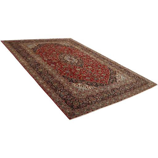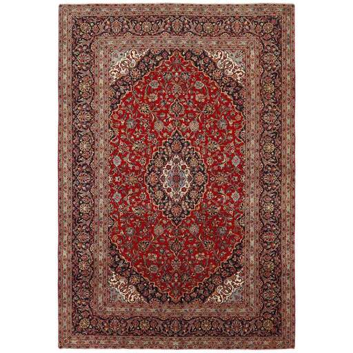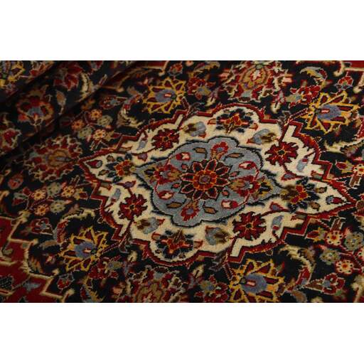 Keshan a toujours été célèbre pour son artisanat. Les villages se situent sur la route principale entre Ghom et Ispahan, dans le centre de l'Iran. À l'est, la région borde le plus grand désert d'Iran. Malgré le déclin de cet artisanat particulier au cours du XXe siècle, de nombreux tapis Keshan magnifiques sont toujours fabriqués conformément aux traditions des anciens maîtres, par exemple décorés de magnifiques motifs en médaillon ou de tapisseries représentant des motifs humains et animaux. Les motifs sont le plus souvent tissés autour d'un médaillon au centre du tapis, dont certains se répètent dans les coins. Les autres champs sont densément décorés de fleurs et de vignes réalistes. La bordure principale présente souvent le motif « Herati » (une feuille arquée), tandis que les bordures secondaires présentent des rosettes. Le rouge brique et le bleu foncé sont les couleurs de base les plus courantes. Keshan est une ville d'environ 300 000 habitants, située dans la province d'Ispahan, dans le centre de l'Iran. Elle est plutôt basse et il fait très chaud en été. Traditionnellement, les gens ont cherché à remédier à ce problème en construisant les maisons dans le sol. Keshan produit des tapis en laine et en soie. Les premiers ont une chaîne et une trame en coton, la trame étant bleue. Plusieurs qualités sont produites, mais la plupart des tapis Keshan sont très finement noués et entièrement couvrants. La forme d'un médaillon Keshan est assez particulière ; elle est faite d'une alternance de lignes courbes et d'angles droits. Les couleurs les plus courantes sont un champ rouge et un médaillon bleu, avec des détails secondaires dans d'autres couleurs. Les garnitures d'un tapis Keshan sont également spéciales ; la garniture principale est normalement entourée de rayures qui forment un motif géométrique, généralement de petits triangles bleus et rouges. Les tapis Keshan existent dans toutes les tailles. La ville de Natanez, au sud-est du pays, a donné son nom à des tapis d'image réalisés avec le même nouage que les Keshan.