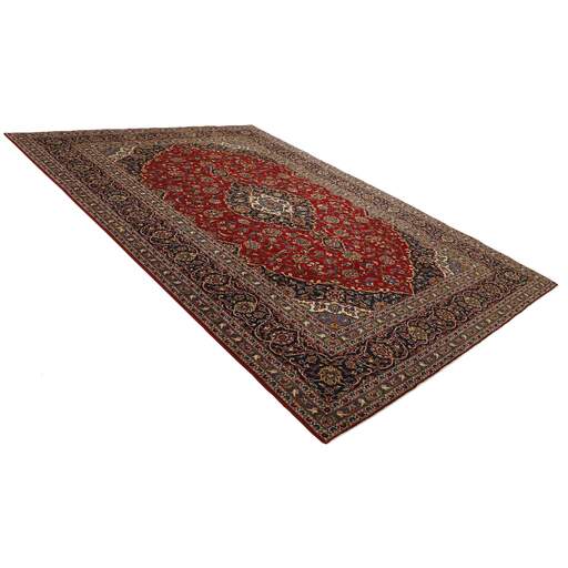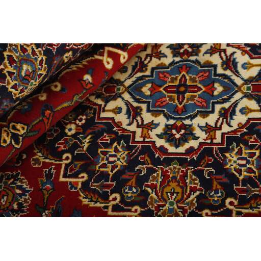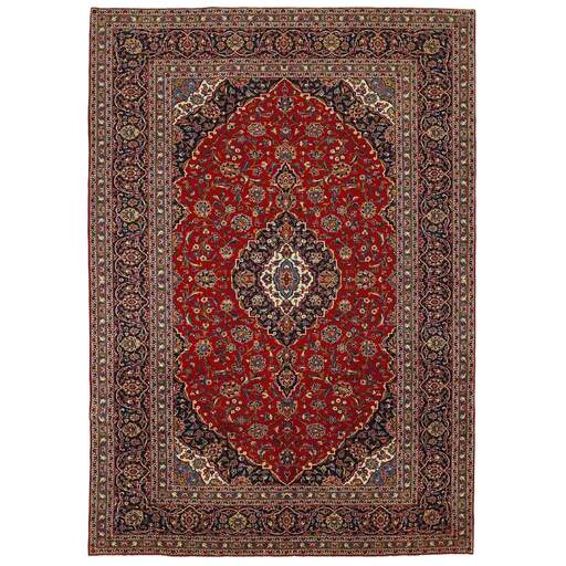 Keshan a toujours été célèbre pour son artisanat. Les villages se situent sur la route principale entre Ghom et Ispahan, dans le centre de l'Iran. À l'est, la région borde le plus grand désert d'Iran. Malgré le déclin de cet artisanat particulier au cours du XXe siècle, de nombreux tapis Keshan magnifiques sont toujours fabriqués conformément aux traditions des anciens maîtres, par exemple décorés de magnifiques motifs en médaillon ou de tapisseries représentant des motifs humains et animaux. Les motifs sont le plus souvent tissés autour d'un médaillon au centre du tapis, dont certains se répètent dans les coins. Les autres champs sont densément décorés de fleurs et de vignes réalistes. La bordure principale présente souvent le motif « Herati » (une feuille arquée), tandis que les bordures secondaires présentent des rosettes. Le rouge brique et le bleu foncé sont les couleurs de base les plus courantes. Keshan est une ville d'environ 300 000 habitants, située dans la province d'Ispahan, dans le centre de l'Iran. Elle est plutôt basse et il fait très chaud en été. Traditionnellement, les gens ont cherché à remédier à ce problème en construisant les maisons dans le sol. Keshan produit des tapis en laine et en soie. Les premiers ont une chaîne et une trame en coton, la trame étant bleue. Plusieurs qualités sont produites, mais la plupart des tapis Keshan sont très finement noués et entièrement couvrants. La forme d'un médaillon Keshan est assez particulière ; elle est faite d'une alternance de lignes courbes et d'angles droits. Les couleurs les plus courantes sont un champ rouge et un médaillon bleu, avec des détails secondaires dans d'autres couleurs. Les garnitures d'un tapis Keshan sont également spéciales ; la garniture principale est normalement entourée de rayures qui forment un motif géométrique, généralement de petits triangles bleus et rouges. Les tapis Keshan existent dans toutes les tailles. La ville de Natanez, au sud-est du pays, a donné son nom à des tapis d'image réalisés avec le même nouage que les Keshan.