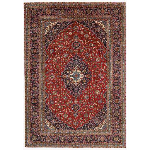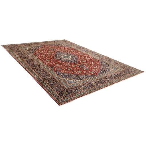 Keshan a toujours été célèbre pour son artisanat. Les villages se situent sur la route principale entre Ghom et Ispahan, dans le centre de l'Iran. À l'est, la région borde le plus grand désert d'Iran. Malgré le déclin de cet artisanat particulier au cours du XXe siècle, de nombreux tapis Keshan magnifiques sont toujours fabriqués conformément aux traditions des anciens maîtres, par exemple décorés de magnifiques motifs en médaillon ou de tapisseries représentant des motifs humains et animaux. Les motifs sont le plus souvent tissés autour d'un médaillon au centre du tapis, dont certains se répètent dans les coins. Les autres champs sont densément décorés de fleurs et de vignes réalistes. La bordure principale présente souvent le motif « Herati » (une feuille arquée), tandis que les bordures secondaires présentent des rosettes. Le rouge brique et le bleu foncé sont les couleurs de base les plus courantes. Keshan est une ville d'environ 300 000 habitants, située dans la province d'Ispahan, dans le centre de l'Iran. Elle est plutôt basse et il fait très chaud en été. Traditionnellement, les gens ont cherché à remédier à ce problème en construisant les maisons dans le sol. Keshan produit des tapis en laine et en soie. Les premiers ont une chaîne et une trame en coton, la trame étant bleue. Plusieurs qualités sont produites, mais la plupart des tapis Keshan sont très finement noués et entièrement couvrants. La forme d'un médaillon Keshan est assez particulière ; elle est faite d'une alternance de lignes courbes et d'angles droits. Les couleurs les plus courantes sont un champ rouge et un médaillon bleu, avec des détails secondaires dans d'autres couleurs. Les garnitures d'un tapis Keshan sont également spéciales ; la garniture principale est normalement entourée de rayures qui forment un motif géométrique, généralement de petits triangles bleus et rouges. Les tapis Keshan existent dans toutes les tailles. La ville de Natanez, au sud-est du pays, a donné son nom à des tapis d'image réalisés avec le même nouage que les Keshan.