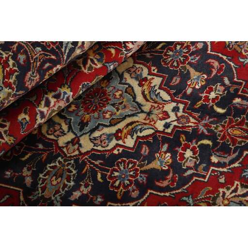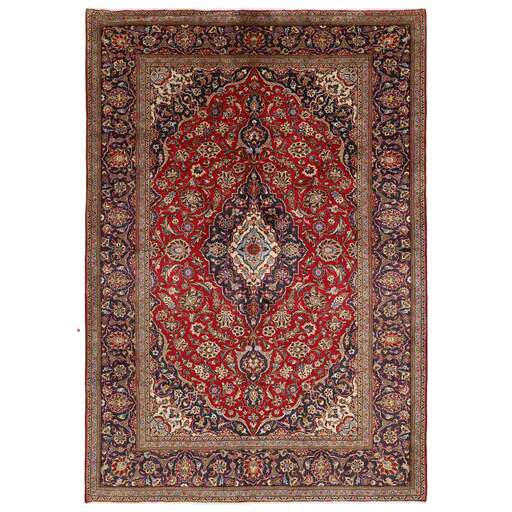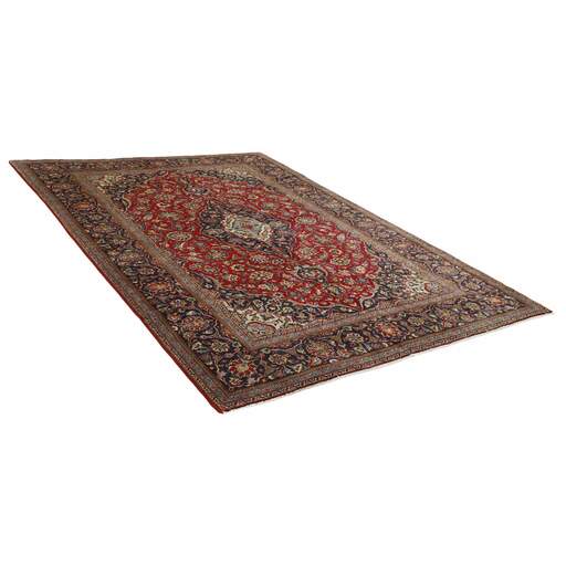 Keshan a toujours été célèbre pour son artisanat. Les villages se situent sur la route principale entre Ghom et Ispahan, dans le centre de l'Iran. À l'est, la région borde le plus grand désert d'Iran. Malgré le déclin de cet artisanat particulier au cours du XXe siècle, de nombreux tapis Keshan magnifiques sont toujours fabriqués conformément aux traditions des anciens maîtres, par exemple décorés de magnifiques motifs en médaillon ou de tapisseries représentant des motifs humains et animaux. Les motifs sont le plus souvent tissés autour d'un médaillon au centre du tapis, dont certains se répètent dans les coins. Les autres champs sont densément décorés de fleurs et de vignes réalistes. La bordure principale présente souvent le motif « Herati » (une feuille arquée), tandis que les bordures secondaires présentent des rosettes. Le rouge brique et le bleu foncé sont les couleurs de base les plus courantes. Keshan est une ville d'environ 300 000 habitants, située dans la province d'Ispahan, dans le centre de l'Iran. Elle est plutôt basse et il fait très chaud en été. Traditionnellement, les gens ont cherché à remédier à ce problème en construisant les maisons dans le sol. Keshan produit des tapis en laine et en soie. Les premiers ont une chaîne et une trame en coton, la trame étant bleue. Plusieurs qualités sont produites, mais la plupart des tapis Keshan sont très finement noués et entièrement couvrants. La forme d'un médaillon Keshan est assez particulière ; elle est faite d'une alternance de lignes courbes et d'angles droits. Les couleurs les plus courantes sont un champ rouge et un médaillon bleu, avec des détails secondaires dans d'autres couleurs. Les garnitures d'un tapis Keshan sont également spéciales ; la garniture principale est normalement entourée de rayures qui forment un motif géométrique, généralement de petits triangles bleus et rouges. Les tapis Keshan existent dans toutes les tailles. La ville de Natanez, au sud-est du pays, a donné son nom à des tapis d'image réalisés avec le même nouage que les Keshan.