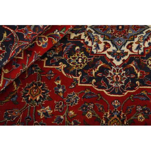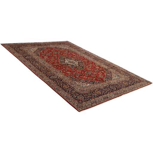 Keshan a toujours été célèbre pour son artisanat. Les villages se situent sur la route principale entre Ghom et Ispahan, dans le centre de l'Iran. À l'est, la région borde le plus grand désert d'Iran. Malgré le déclin de cet artisanat particulier au cours du XXe siècle, de nombreux tapis Keshan magnifiques sont toujours fabriqués conformément aux traditions des anciens maîtres, par exemple décorés de magnifiques motifs en médaillon ou de tapisseries représentant des motifs humains et animaux. Les motifs sont le plus souvent tissés autour d'un médaillon au centre du tapis, dont certains se répètent dans les coins. Les autres champs sont densément décorés de fleurs et de vignes réalistes. La bordure principale présente souvent le motif « Herati » (une feuille arquée), tandis que les bordures secondaires présentent des rosettes. Le rouge brique et le bleu foncé sont les couleurs de base les plus courantes. Keshan est une ville d'environ 300 000 habitants, située dans la province d'Ispahan, dans le centre de l'Iran. Elle est plutôt basse et il fait très chaud en été. Traditionnellement, les gens ont cherché à remédier à ce problème en construisant les maisons dans le sol. Keshan produit des tapis en laine et en soie. Les premiers ont une chaîne et une trame en coton, la trame étant bleue. Plusieurs qualités sont produites, mais la plupart des tapis Keshan sont très finement noués et entièrement couvrants. La forme d'un médaillon Keshan est assez particulière ; elle est faite d'une alternance de lignes courbes et d'angles droits. Les couleurs les plus courantes sont un champ rouge et un médaillon bleu, avec des détails secondaires dans d'autres couleurs. Les garnitures d'un tapis Keshan sont également spéciales ; la garniture principale est normalement entourée de rayures qui forment un motif géométrique, généralement de petits triangles bleus et rouges. Les tapis Keshan existent dans toutes les tailles. La ville de Natanez, au sud-est du pays, a donné son nom à des tapis d'image réalisés avec le même nouage que les Keshan.