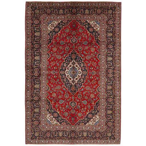 Keshan a toujours été célèbre pour son artisanat. Les villages se situent sur la route principale entre Ghom et Ispahan, dans le centre de l'Iran. À l'est, la région borde le plus grand désert d'Iran. Malgré le déclin de cet artisanat particulier au cours du XXe siècle, de nombreux tapis Keshan magnifiques sont toujours fabriqués conformément aux traditions des anciens maîtres, par exemple décorés de magnifiques motifs en médaillon ou de tapisseries représentant des motifs humains et animaux. Les motifs sont le plus souvent tissés autour d'un médaillon au centre du tapis, dont certains se répètent dans les coins. Les autres champs sont densément décorés de fleurs et de vignes réalistes. La bordure principale présente souvent le motif « Herati » (une feuille arquée), tandis que les bordures secondaires présentent des rosettes. Le rouge brique et le bleu foncé sont les couleurs de base les plus courantes. Keshan est une ville d'environ 300 000 habitants, située dans la province d'Ispahan, dans le centre de l'Iran. Elle est plutôt basse et il fait très chaud en été. Traditionnellement, les gens ont cherché à remédier à ce problème en construisant les maisons dans le sol. Keshan produit des tapis en laine et en soie. Les premiers ont une chaîne et une trame en coton, la trame étant bleue. Plusieurs qualités sont produites, mais la plupart des tapis Keshan sont très finement noués et entièrement couvrants. La forme d'un médaillon Keshan est assez particulière ; elle est faite d'une alternance de lignes courbes et d'angles droits. Les couleurs les plus courantes sont un champ rouge et un médaillon bleu, avec des détails secondaires dans d'autres couleurs. Les garnitures d'un tapis Keshan sont également spéciales ; la garniture principale est normalement entourée de rayures qui forment un motif géométrique, généralement de petits triangles bleus et rouges. Les tapis Keshan existent dans toutes les tailles. La ville de Natanez, au sud-est du pays, a donné son nom à des tapis d'image réalisés avec le même nouage que les Keshan.